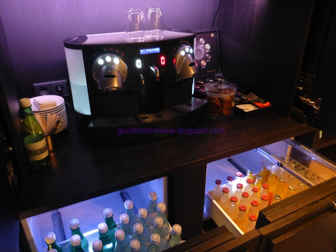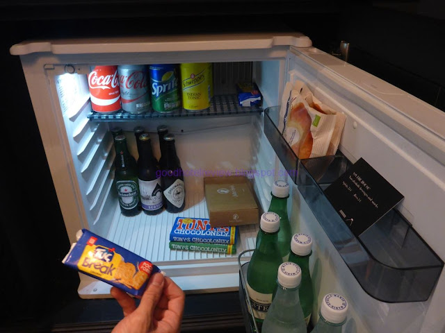 A big cupboard of refreshments is located next to the door and as per Andaz standards, the minibar items are included with the stay, except alcoholic drinks.