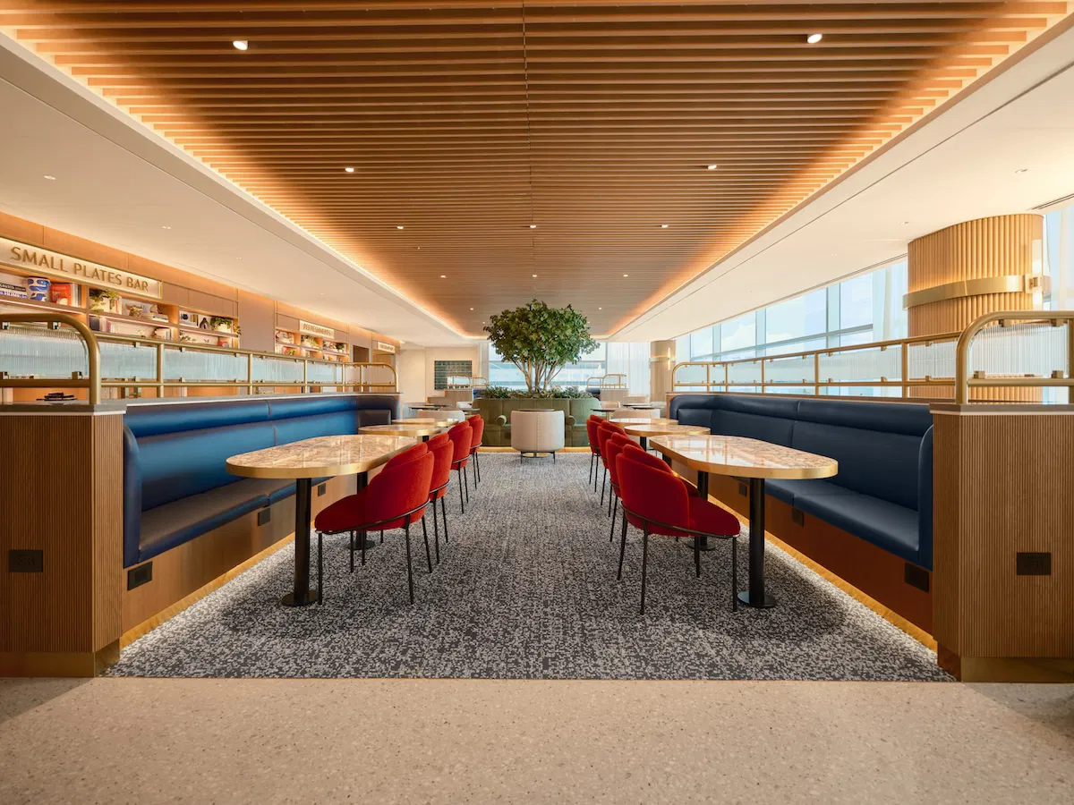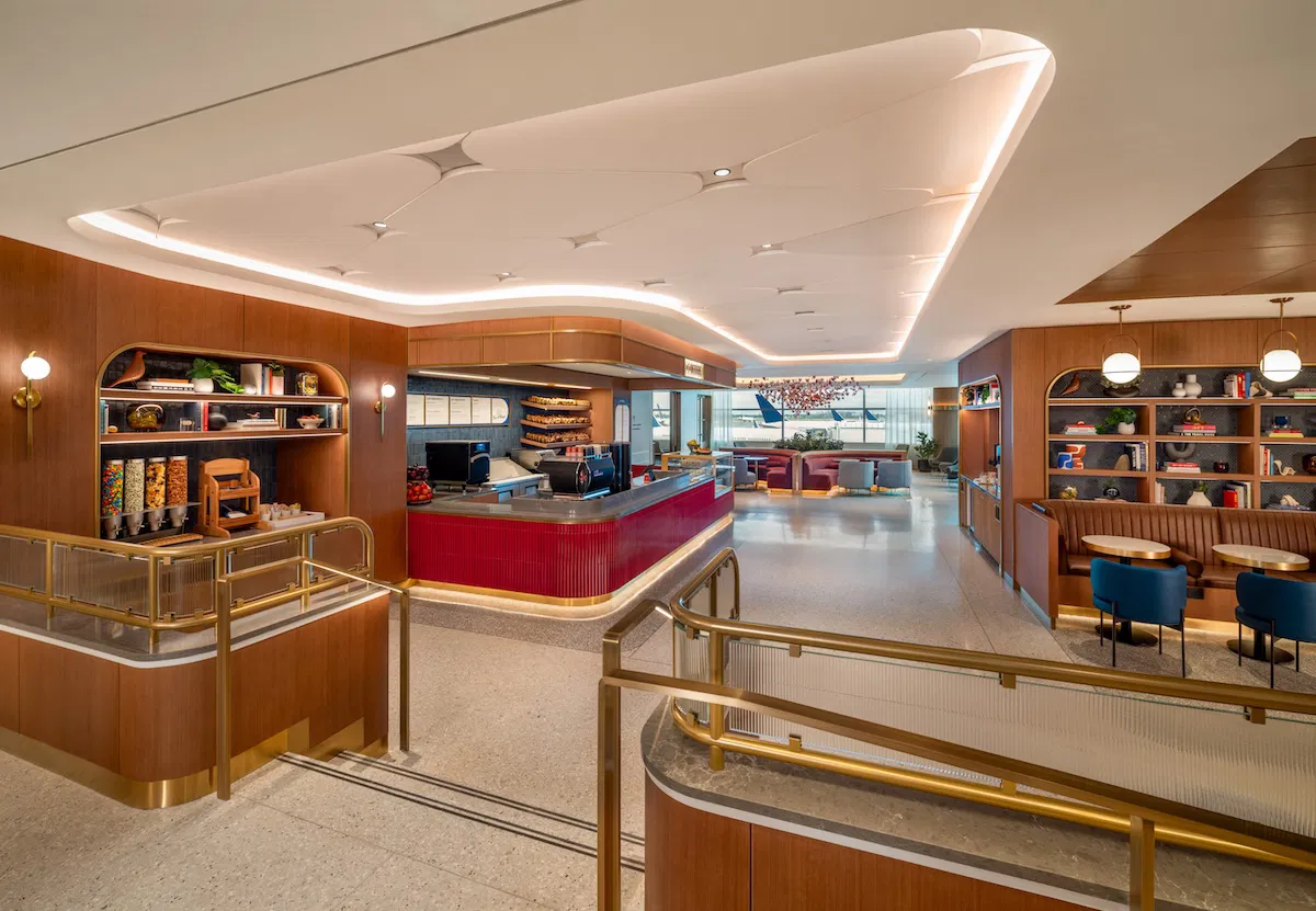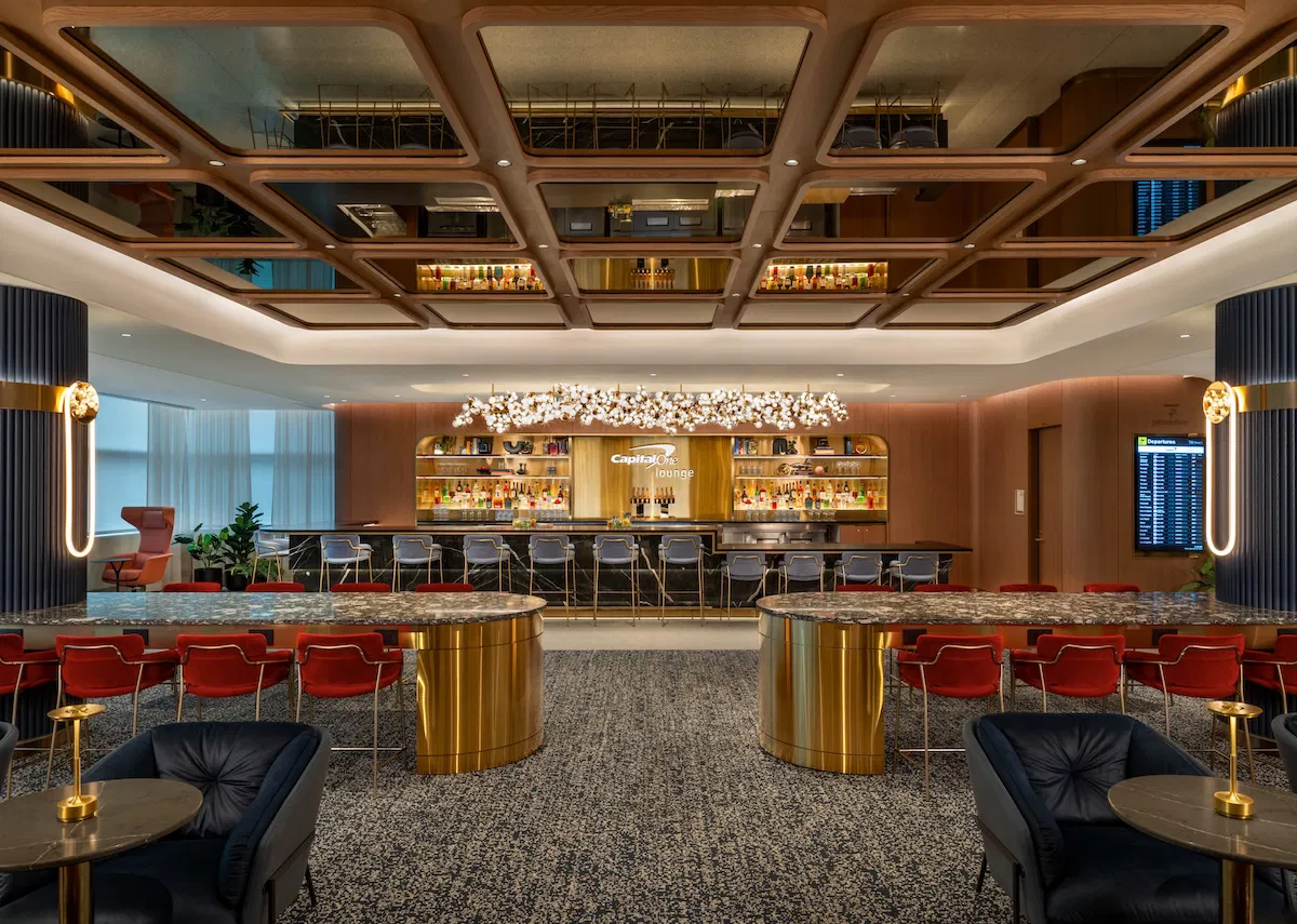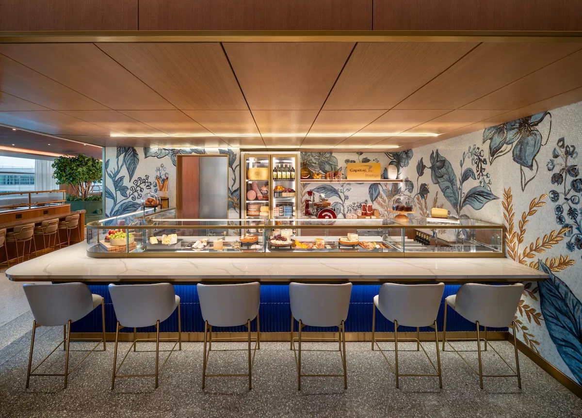 Capital One describes this lounge as “a bold tribute to NYC, leveraging design, destination-inspired food and beverage offerings, and immersive local partnerships to bring the spirit and sophistication of the city to life.” Inside, you’ll find a Central Park-inspired dining area, a Manhattan-style bar, and various artworks by New York-based artists.