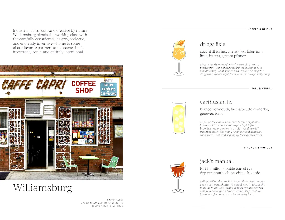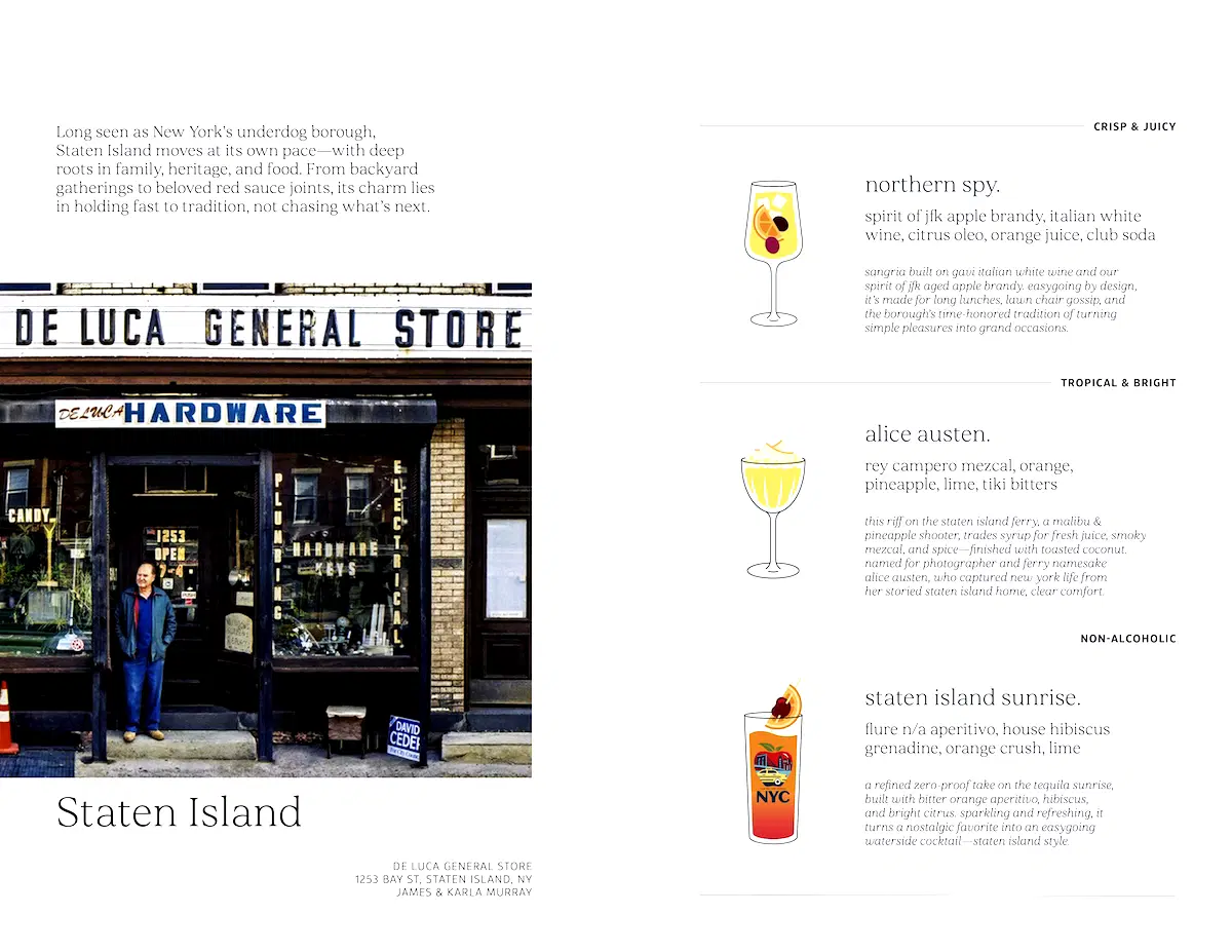 Over at the bar, Death & Co, the East Village institution, has curated a cocktail list that reflects the different New York boroughs. Those who prefer beer can enjoy Skyscraper IPA, a brew created by Booklyn’s Grimm Artisanal Ales exclusively for this lounge.