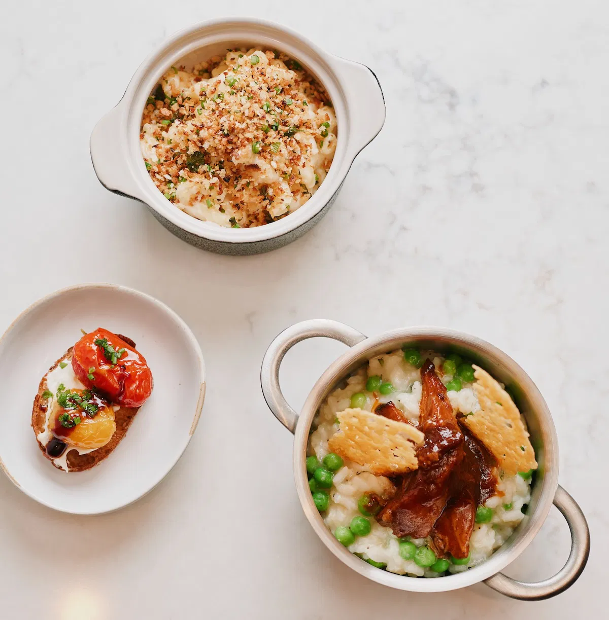 Grab and go options such as sandwiches, wraps, salads and pastries are offered, and a rotating small plates menu offers dishes like wild arugula panzanella and Berkshire pork shank with pea risotto. There’s even a cheesemonger station, featuring selections from New York’s Murray’s Cheese.