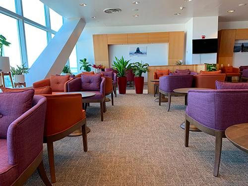 The lounge offers tarmac views, shower suites, high speed Wi-Fi, and power outlets and USB-C ports at every seat. Workstations are available too.