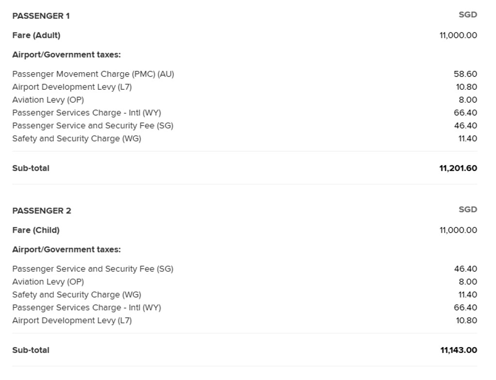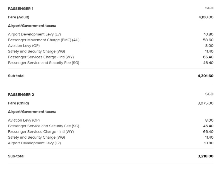 For example, the child fare on a Singapore Airlines round-trip Economy Class fare to Sydney is about 80% of the adult fare, and unlike infants, you’ll usually (but not always) pay the same airport and government taxes.