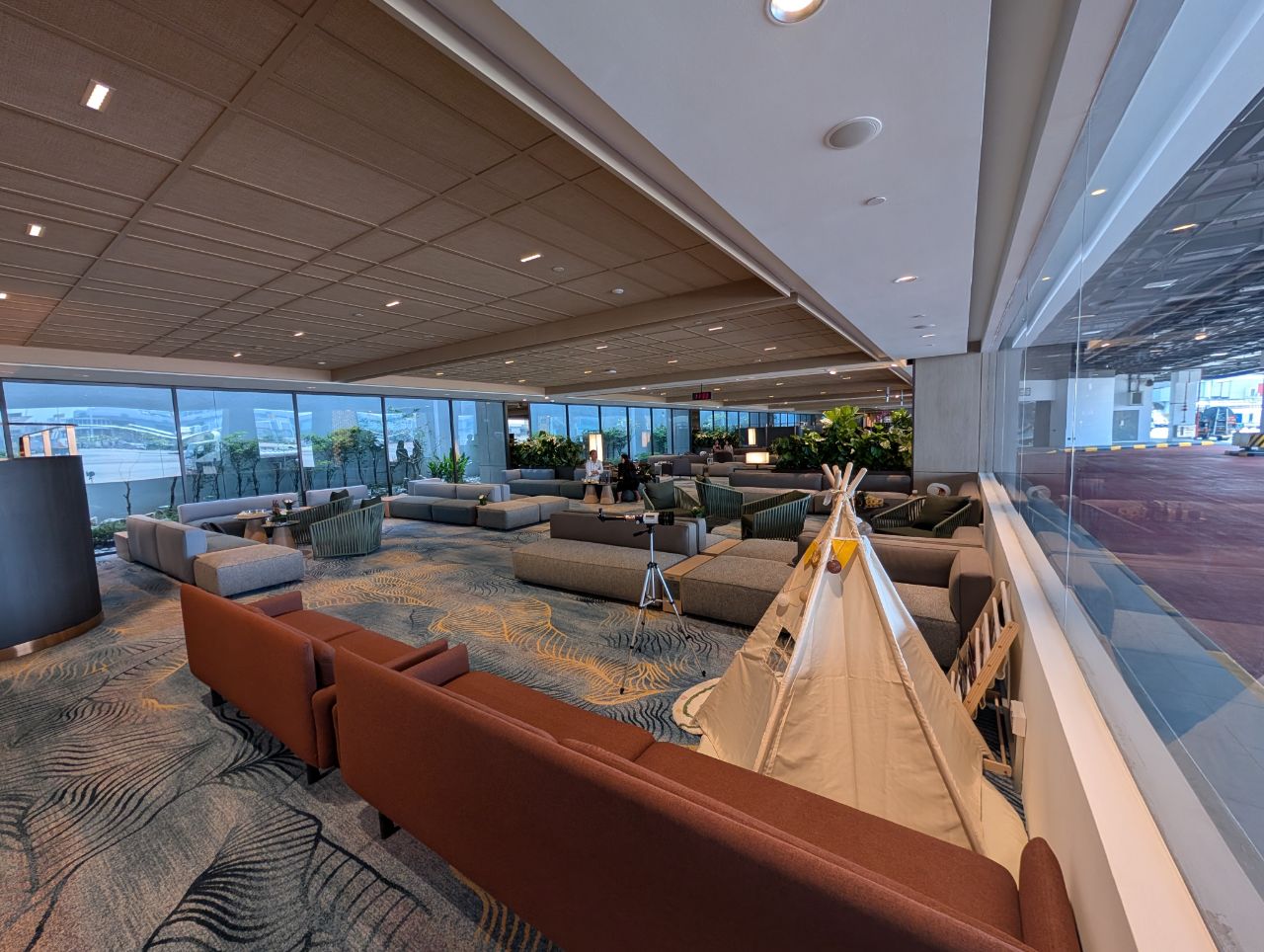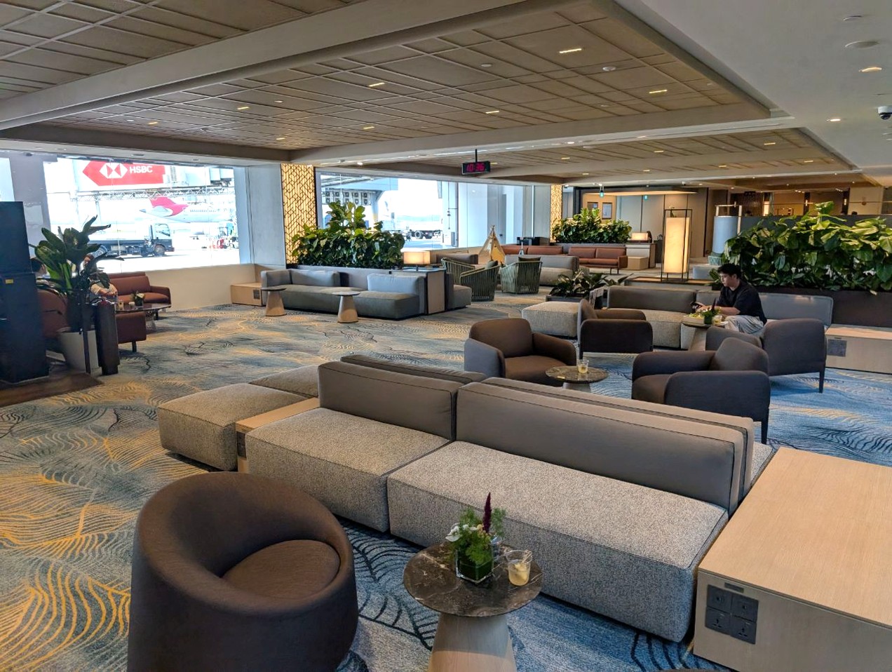 There’s not a lot to discuss in terms of the lounge itself, because it’s basically one long rectangle spanning the length of several gates. Most of the seating consists of sofas and armchairs, and they could have done with a bit more variety, like productivity pods and regular-height dining tables.