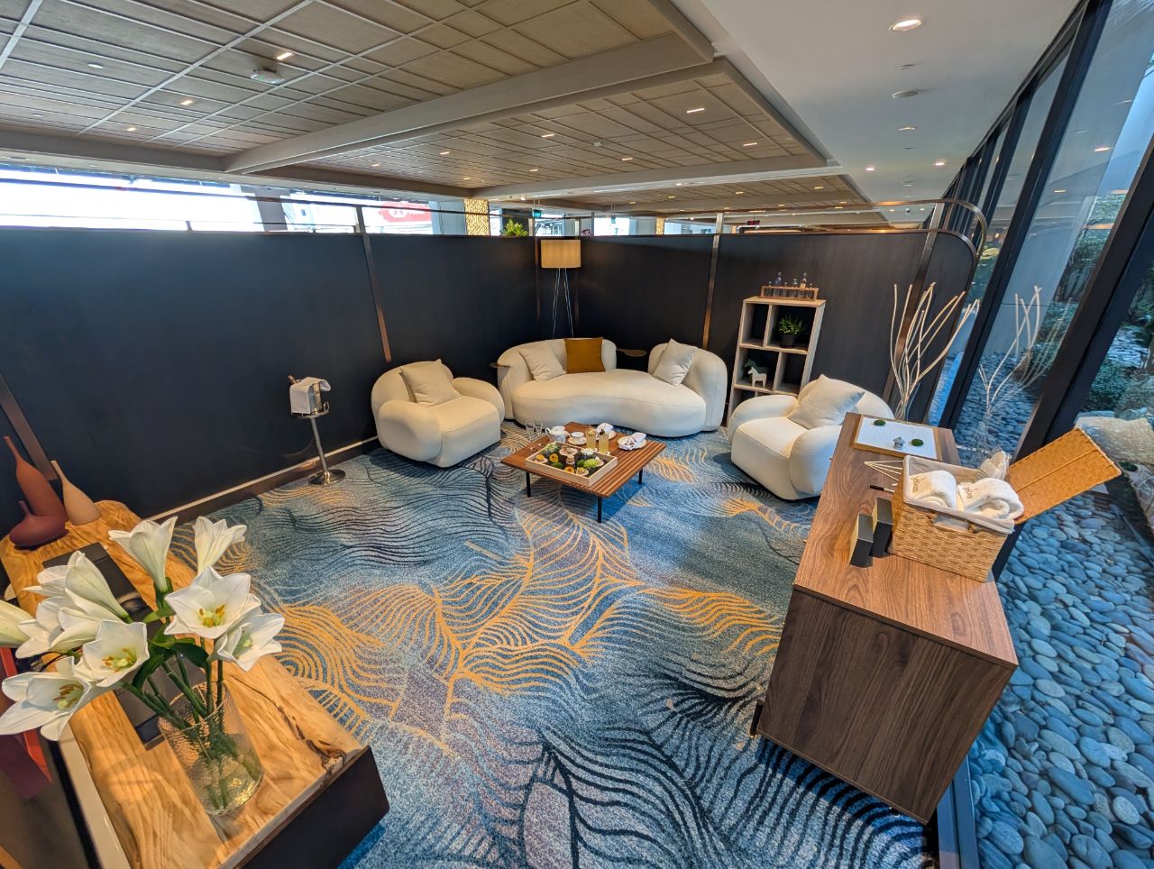 The JetQuay lounge has two private “Jet Suites”, for the exclusive use of passengers who have booked the more expensive Jetside package. These are located at the rear of the lounge, behind privacy partitions.
