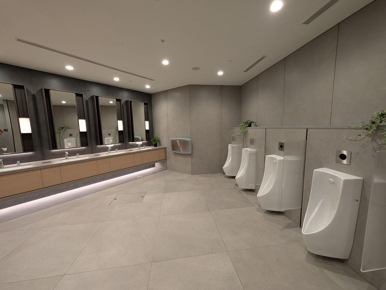 The men’s room is much larger, and it’s nice to see a changing table installed here too (we aren’t exempt from diaper duty, you know!).