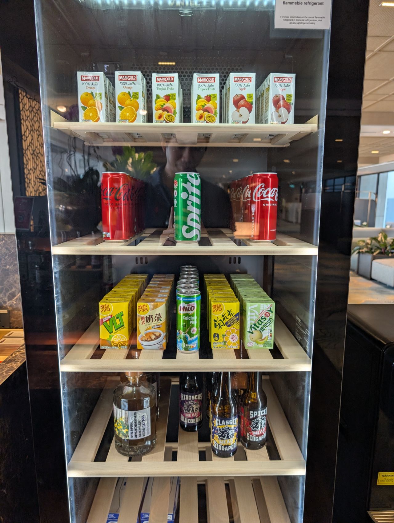 Non-alcoholic options include Marigold juice, Coke and Sprite, Vitasoy and canned Milo. TWG tea and Starbucks coffee is also offered.