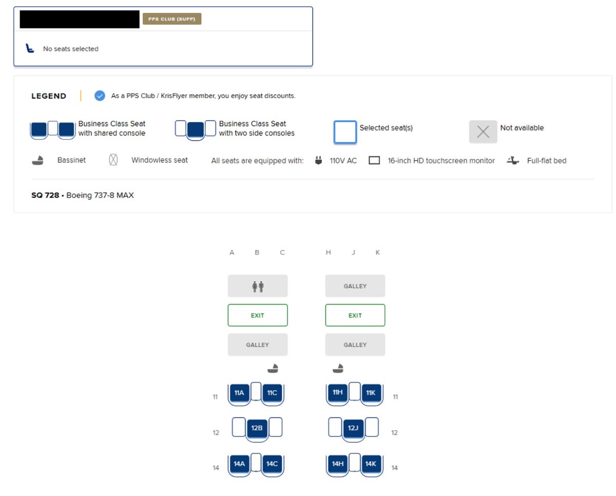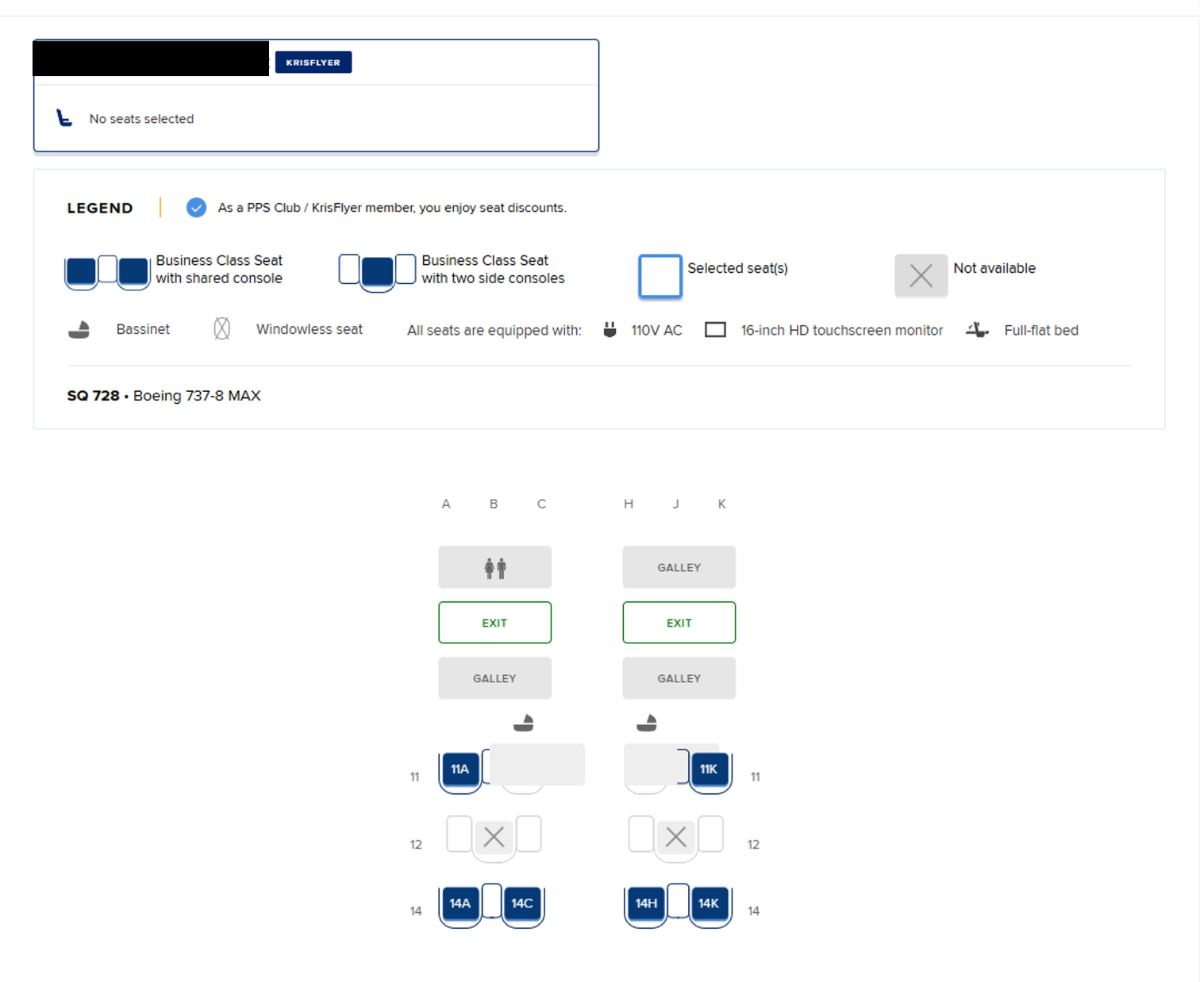 Singapore Airlines now appears to be blocking the “throne seats” on its Boeing 737-8 MAX aircraft for advance selection by Solitaire PPS Club and PPS Club members, a reversal of the previous first-come, first-served policy.