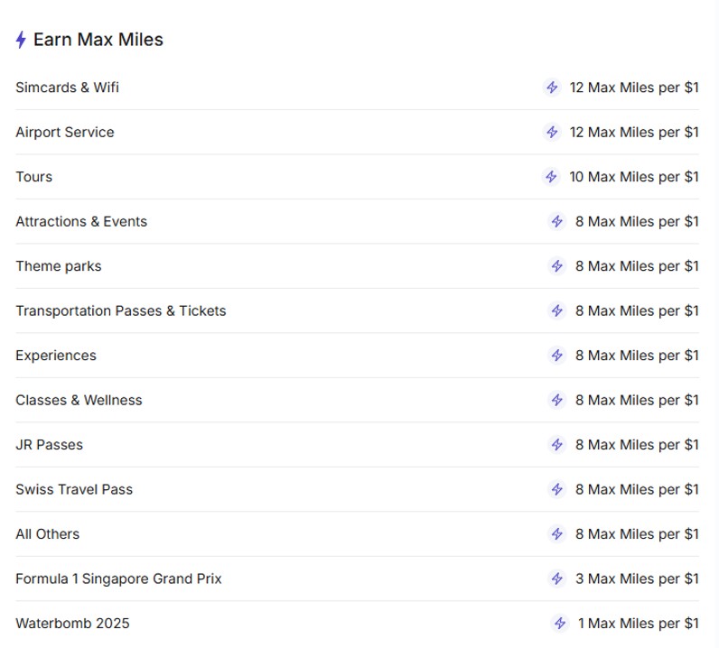 But I really see this as a feature, not a bug, since you can convert Max Miles to 28 airline and hotel loyalty programmes at a 1:1 ratio. Why settle for KrisFlyer?