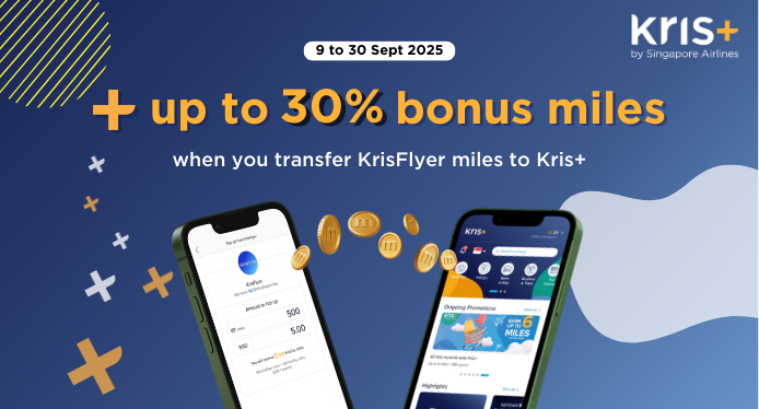From 9-30 September 2025, KrisFlyer members will enjoy up to a 30% bonus when they transfer miles from their KrisFlyer account to Kris+.