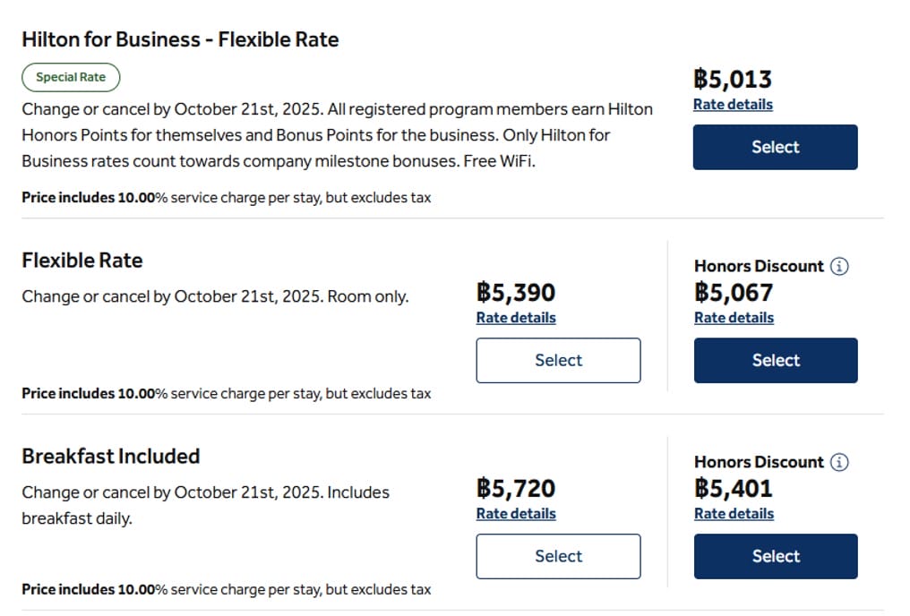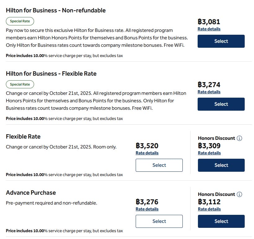However, there can also be hotels which offer a choice of flexible or non-refundable Hilton for Business rates. In this case, you will still save 1-2% off the respective public rate.