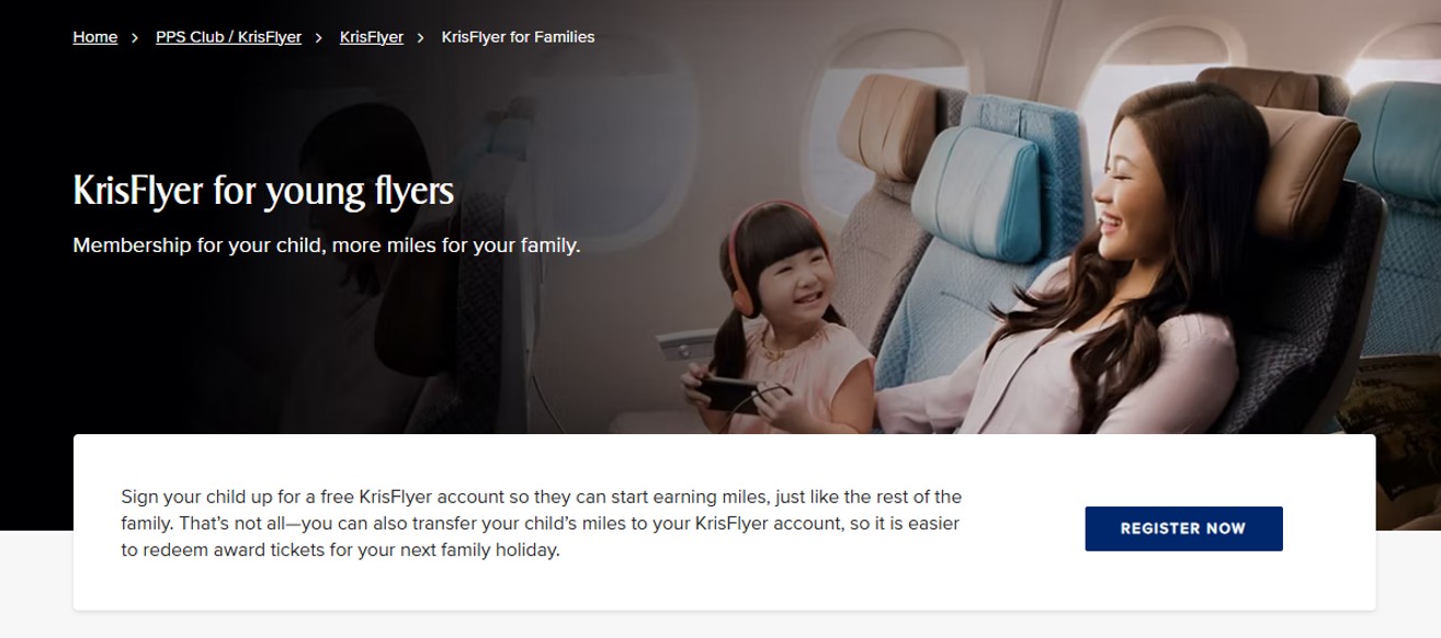 KrisFlyer for Families allows children (up to age 16) to transfer the KrisFlyer miles they earn to a nominated parent, subject to the following conditions: