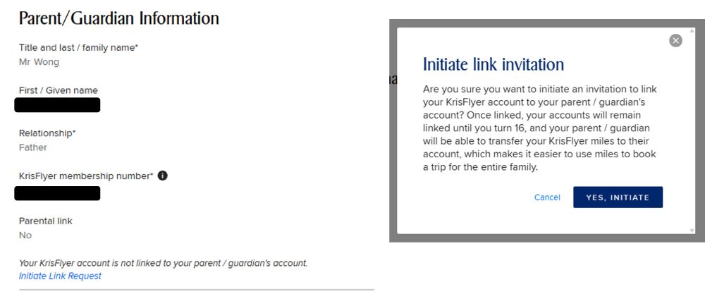 Alternatively, you can log in to your child’s KrisFlyer account and initiate the Parental Link via the Profile → Personal Details section.