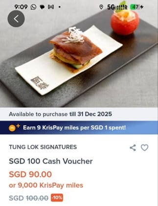 Alternatively, Kris+ users can purchase discounted cash vouchers to lock in the miles today, deferring their visit to some point in the future (though be sure to check the expiry dates before you pull the trigger!).