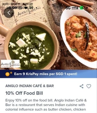 - 20% off S$50 cash voucher for Anglo Indian Cafe & Bar