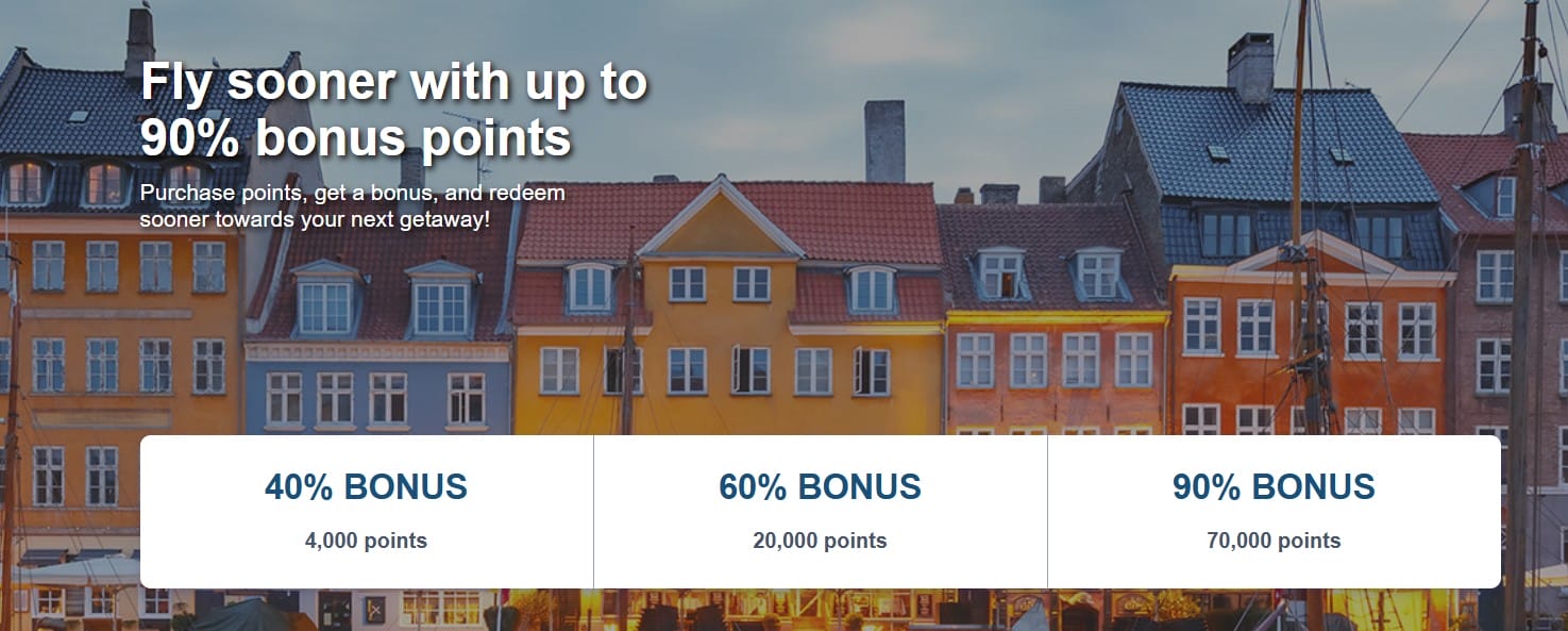 - Buy 70,000+ points: 90% bonus (1.97 CAD¢ per mile)