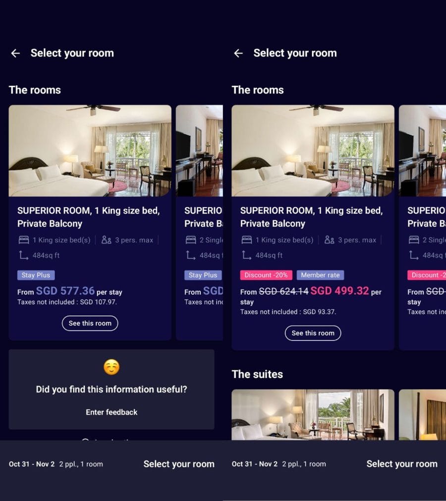 Even if Stay Plus does offer a lower price, you’ll still want to be careful because the savings may be marginal at best. Here’s another example of how the application of Stay Plus only results in a ~S$30 saving.