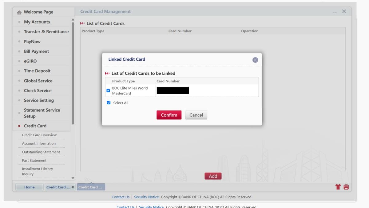 It used to be that the only way of linking a new BOC credit card to internet banking was to pay a visit to a physical bank branch.