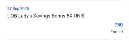 Bonus miles from the UOB Lady’s Savings Account are credited (in the form of UNI$) on the 27th of the following calendar month.