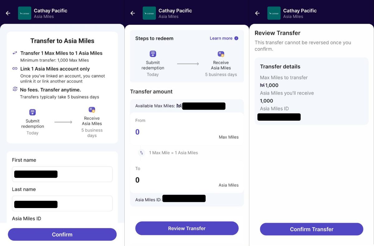 Conversions can be made via the HeyMax app. You will first be required to link your Asia Miles and HeyMax accounts, which cannot be subsequently unlinked (a security measure to prevent one HeyMax user from transferring miles to multiple accounts).
