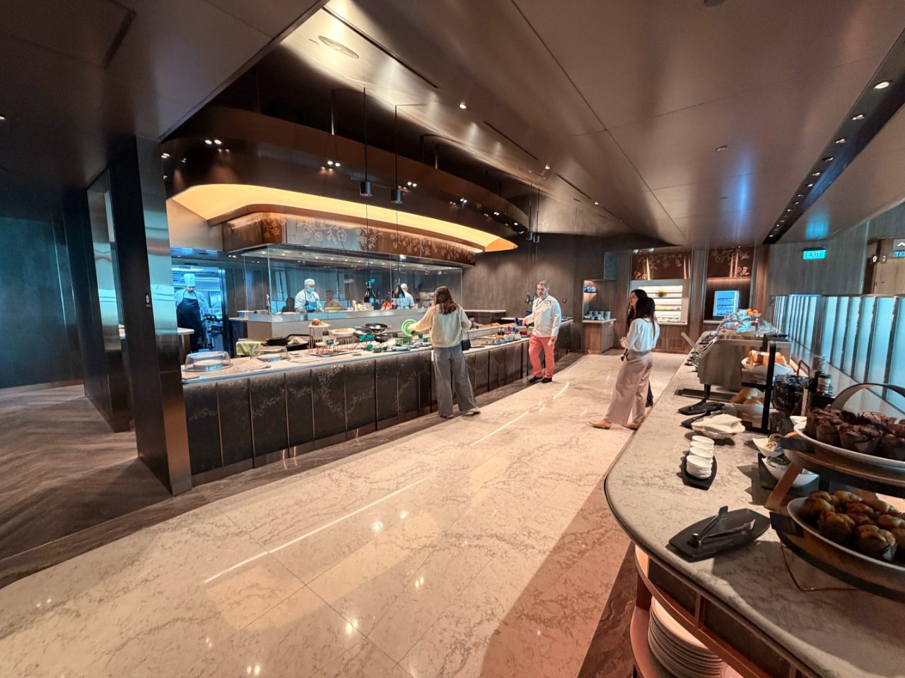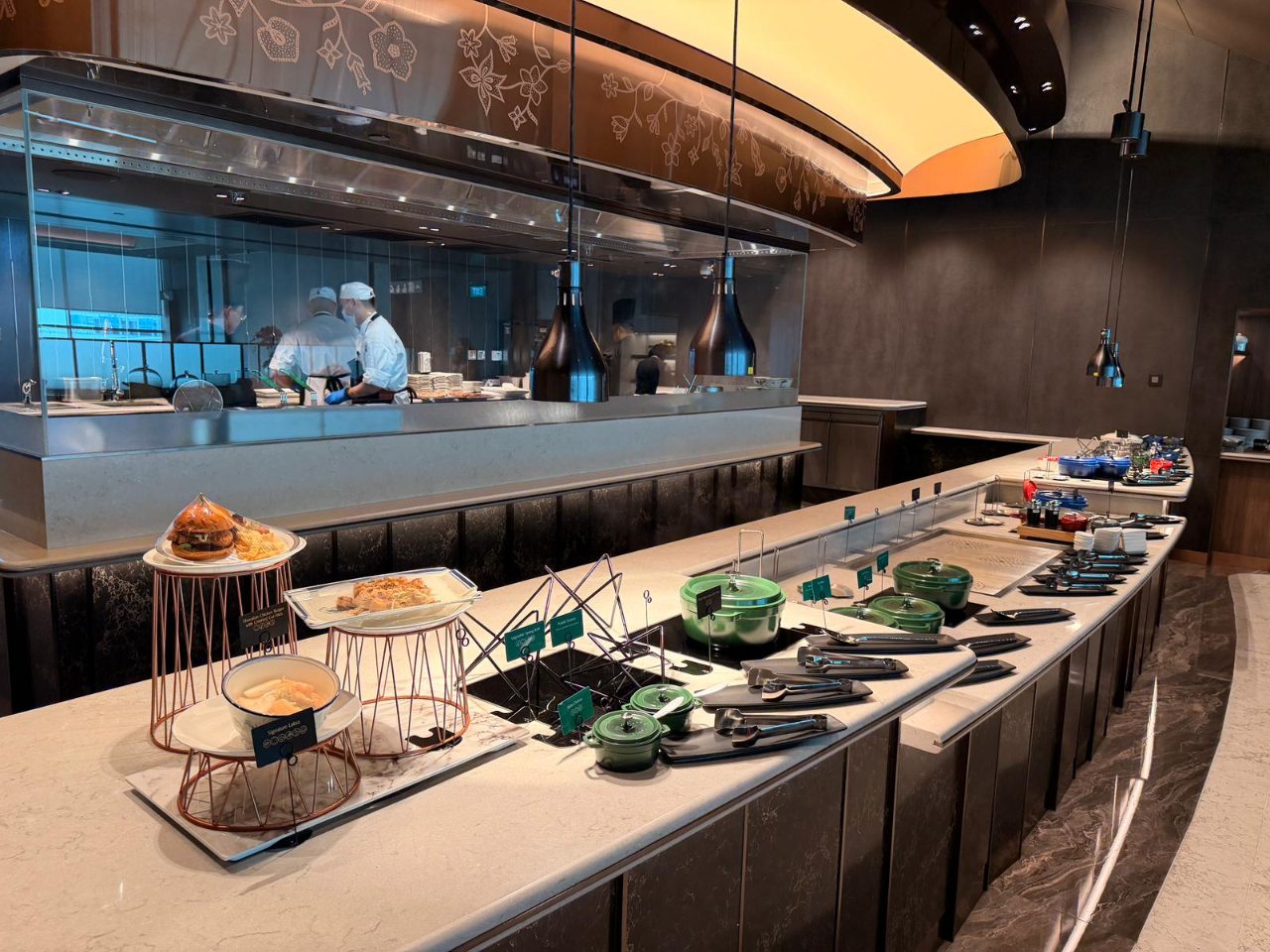 The expanded buffet area now offers a wider range of food and beverage selections, including space for additional live cooking stations.