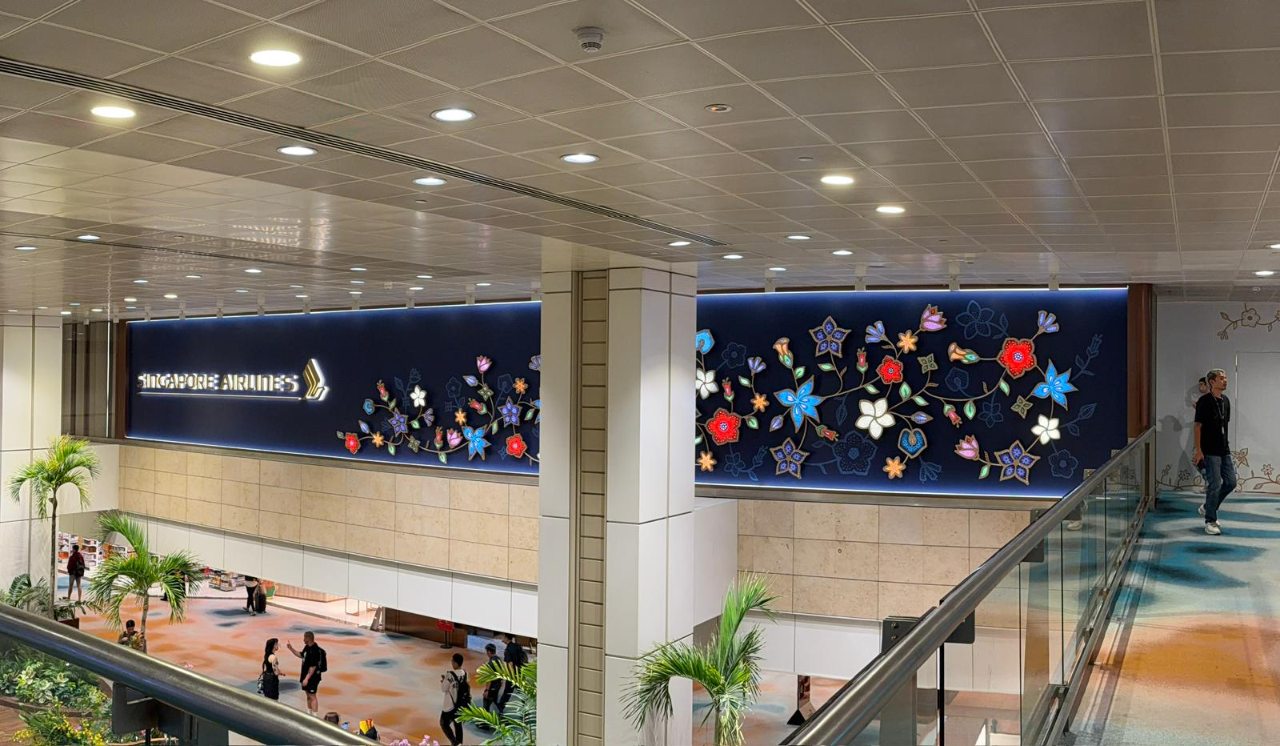 Passengers entering the reception area are welcomed by a large curved LED screen displaying the graceful movement of SIA’s signature batik motif, accompanied by its “Sound of Singapore Airlines” sonic signature and distinctive Batik Flora scent, specially created by Scent by SIX with notes of Aquatic Ginger, Common Dianella, and White Kopsia.