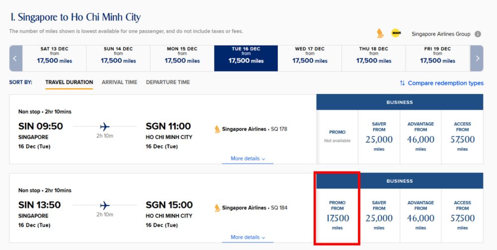 Singapore Airlines shows Spontaneous Escapes awards under a special Promo category. This is the one you should select when making your booking (and if it doesn’t appear, that means there’s no availability remaining- though that doesn’t preclude it from reappearing later, so check back often).