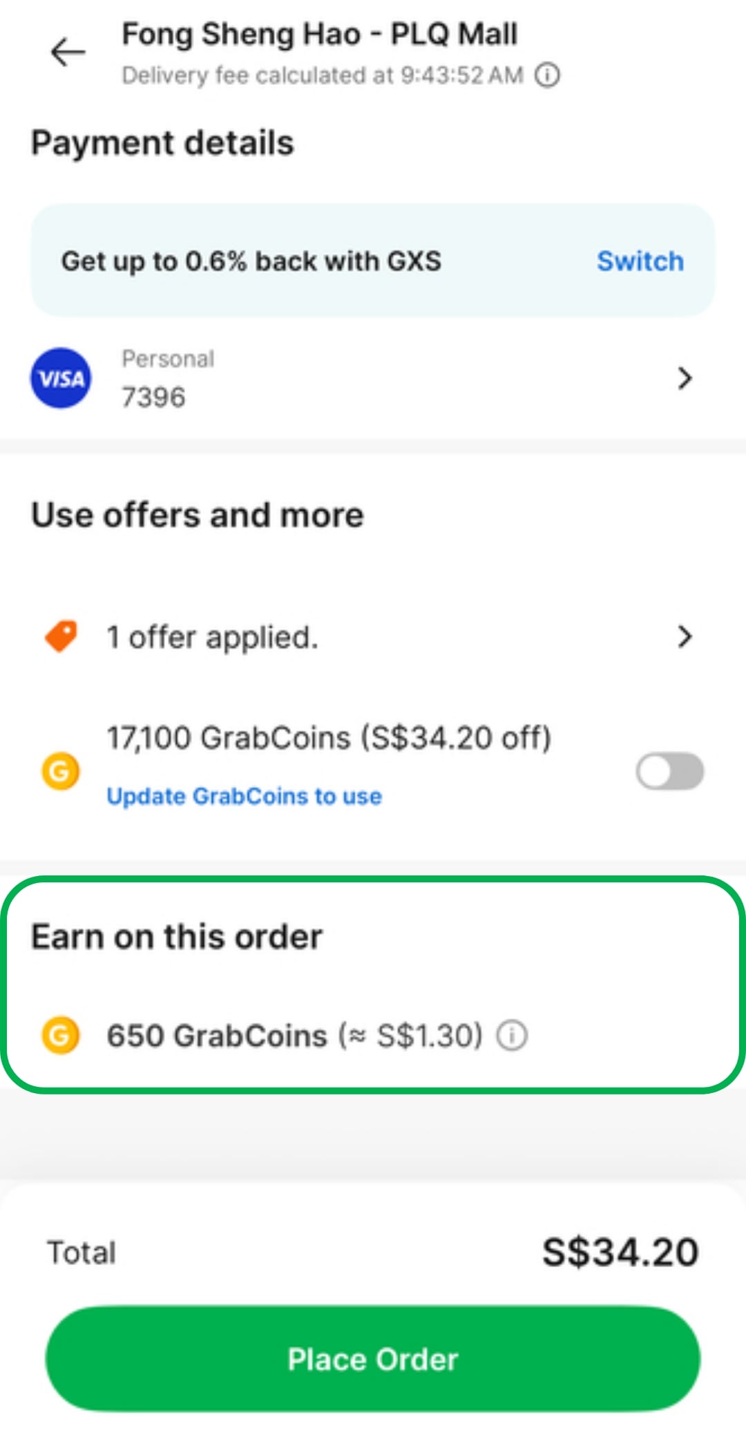 You’ll also be able to see how many GrabCoins you can earn on each order, before you finalise it.