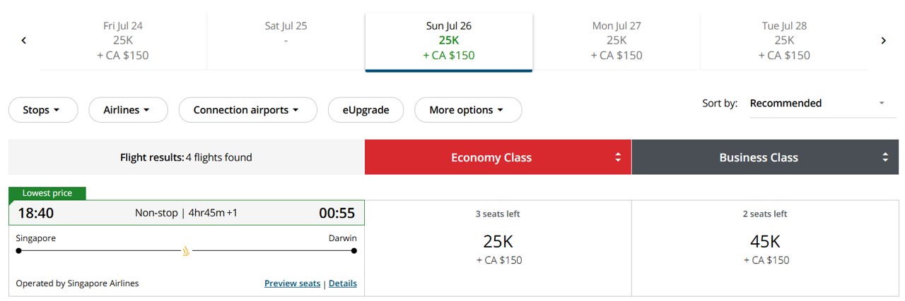 I can, however, find a ton of award seats on Singapore Airlines to Darwin, so if that’s what you’re after, then carry on.