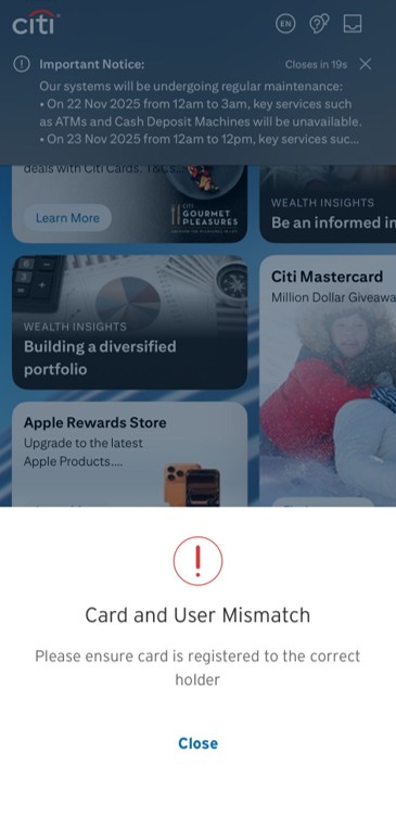 So you can’t actually verify Citi, HSBC, OCBC or Standard Chartered cards through the mobile app, unless you reinstall and bind the security token to the second phone.