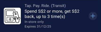 AMEX cardholders who register for this offer will receive a S$2 statement credit when they spend at least S$2 (in one or more transactions) on SimplyGo rides between 25 November and 31 December 2025.