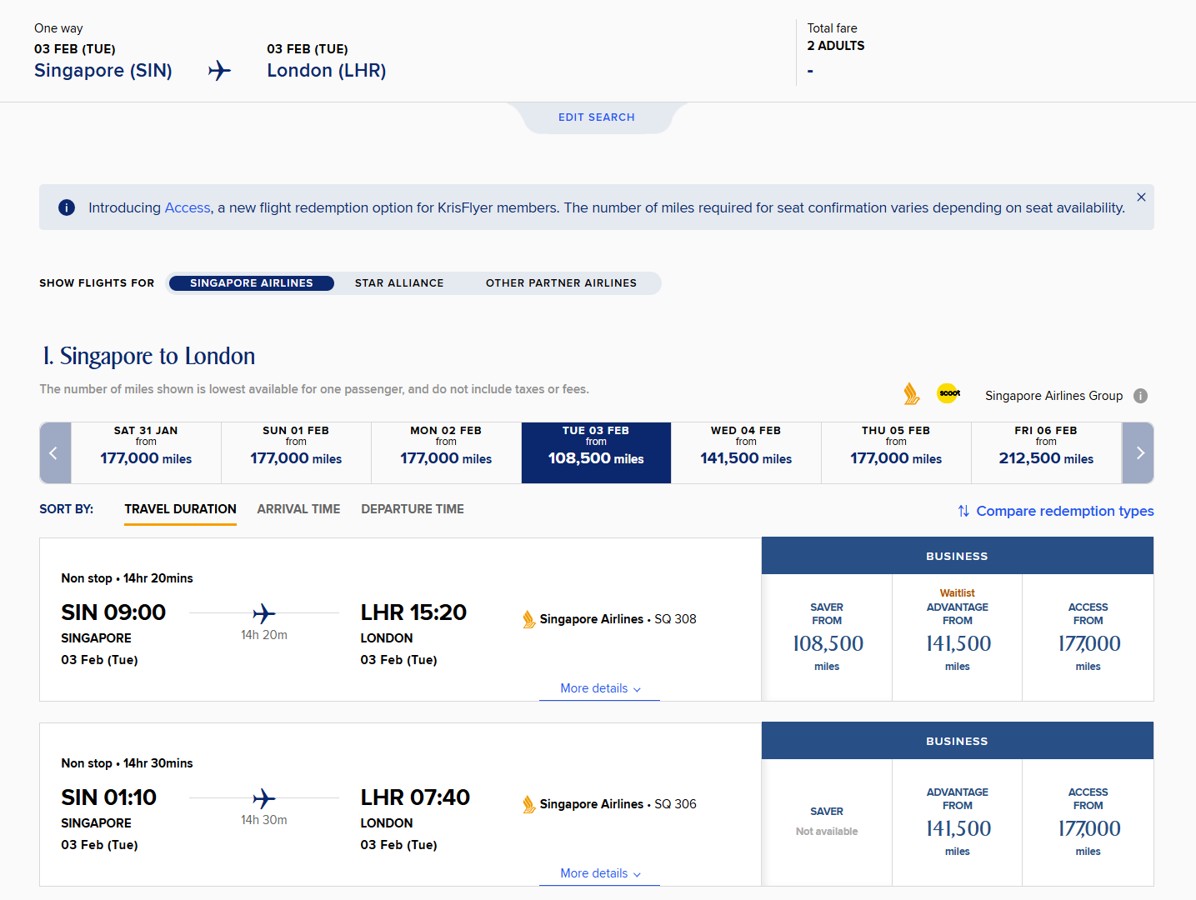 Just highlights how many SIA flights now only have Access awards and how many extra miles are required. Has anyone had a Saver waitlist clear since Access awards were introduced?
