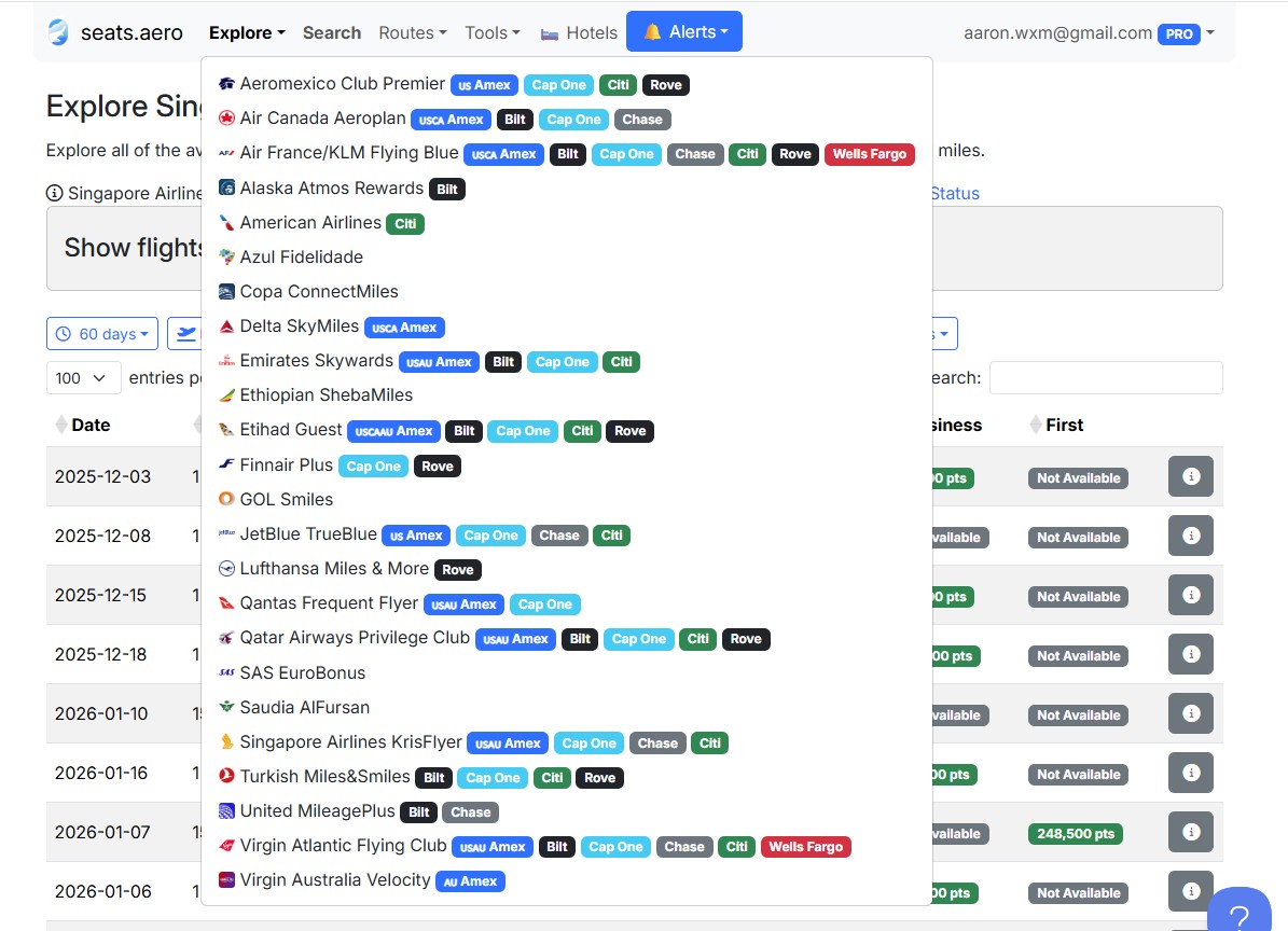 I’ve written a detailed guide to using Seats.Aero, including its awesome time-saving features like Explore, airport groups, filters and seat alerts.