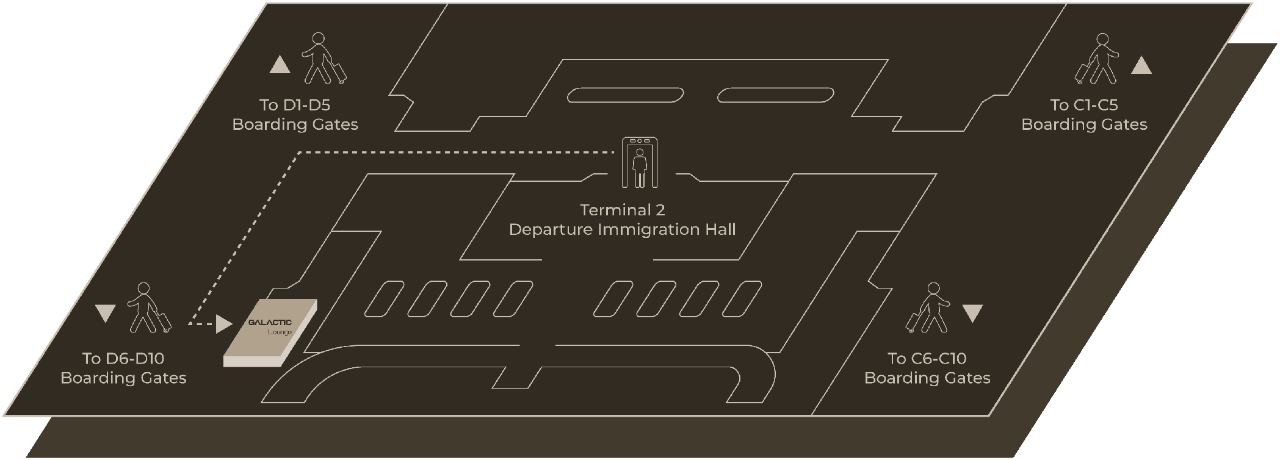 The T2 lounge is located near the D7 boarding gate.
