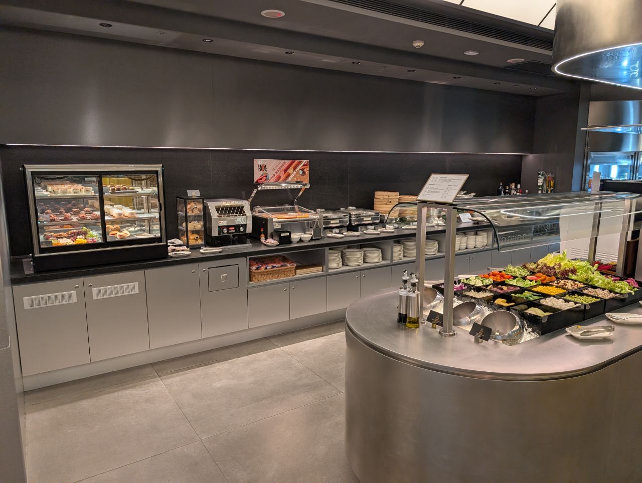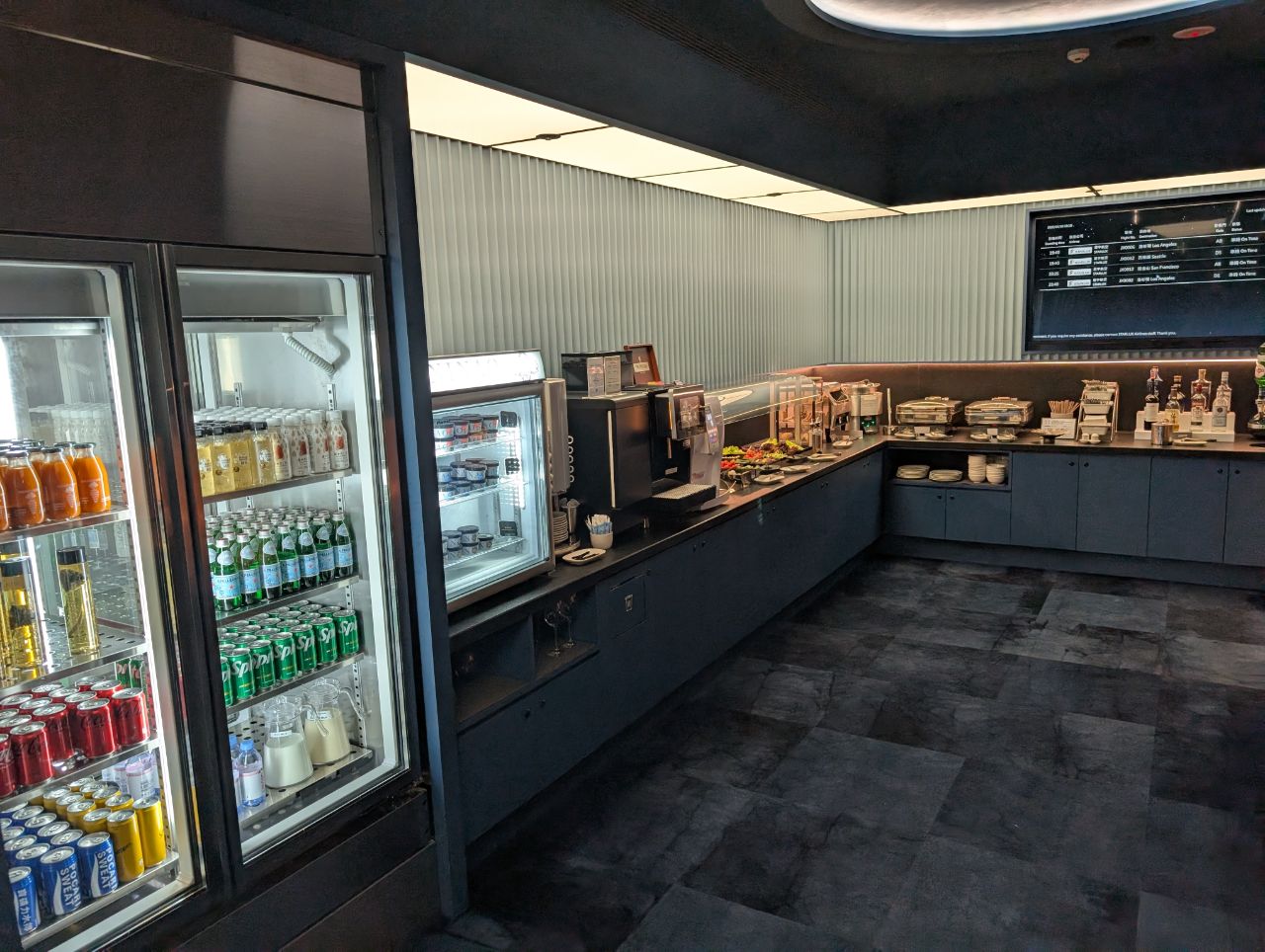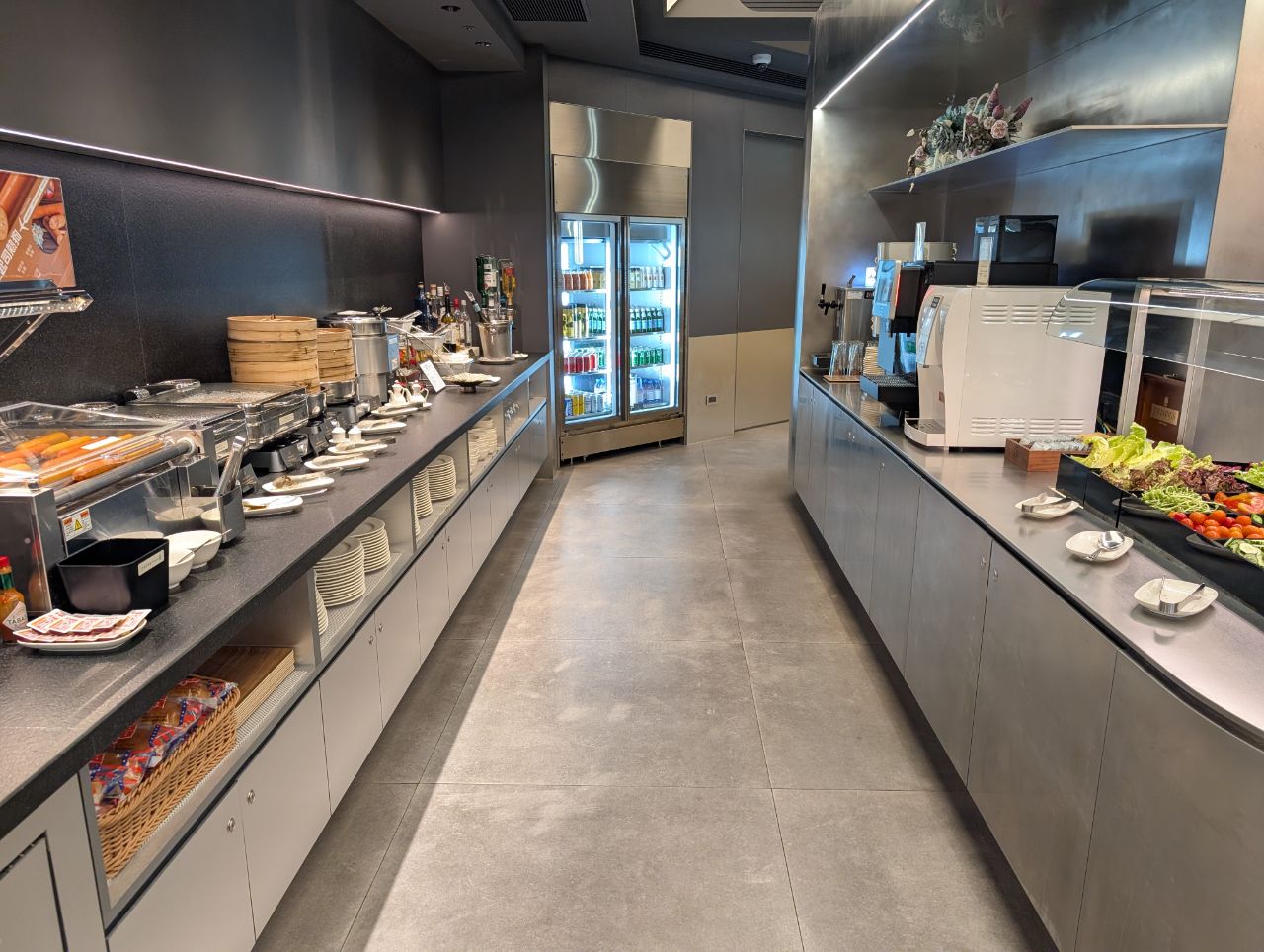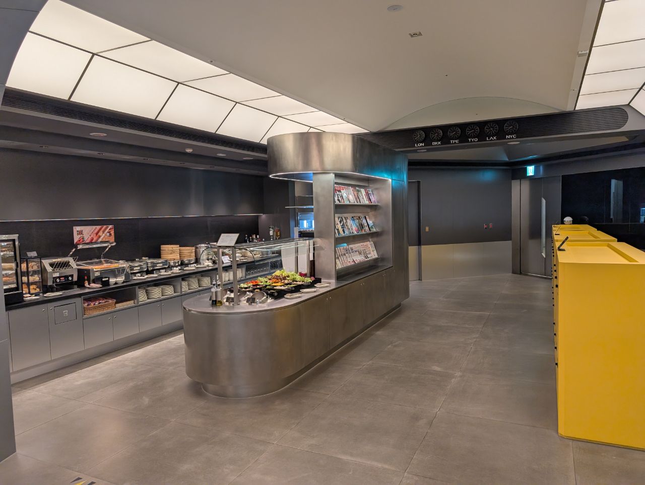 On the opposite side of the lockers and literature racks was the buffet area, one of two in the lounge.