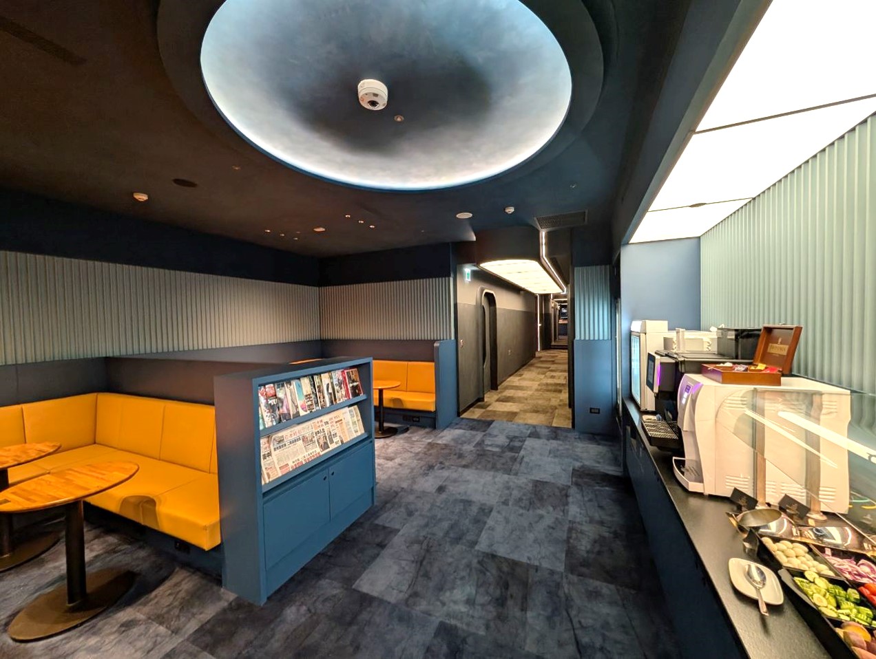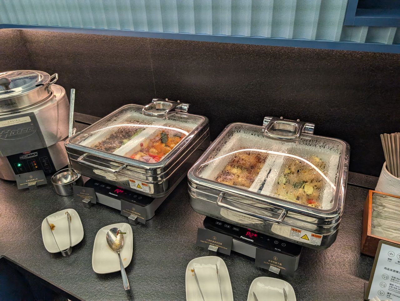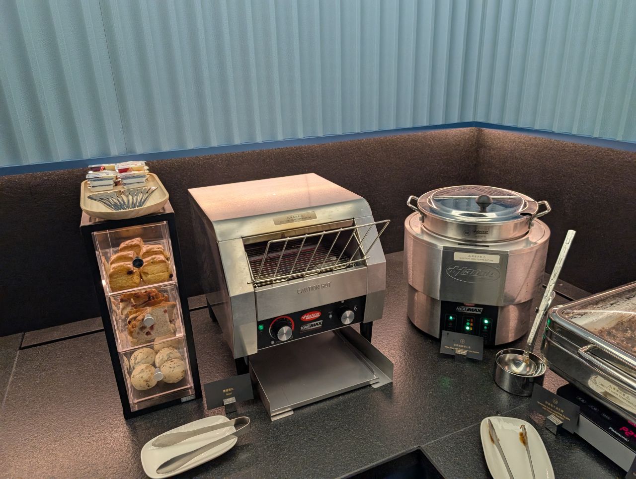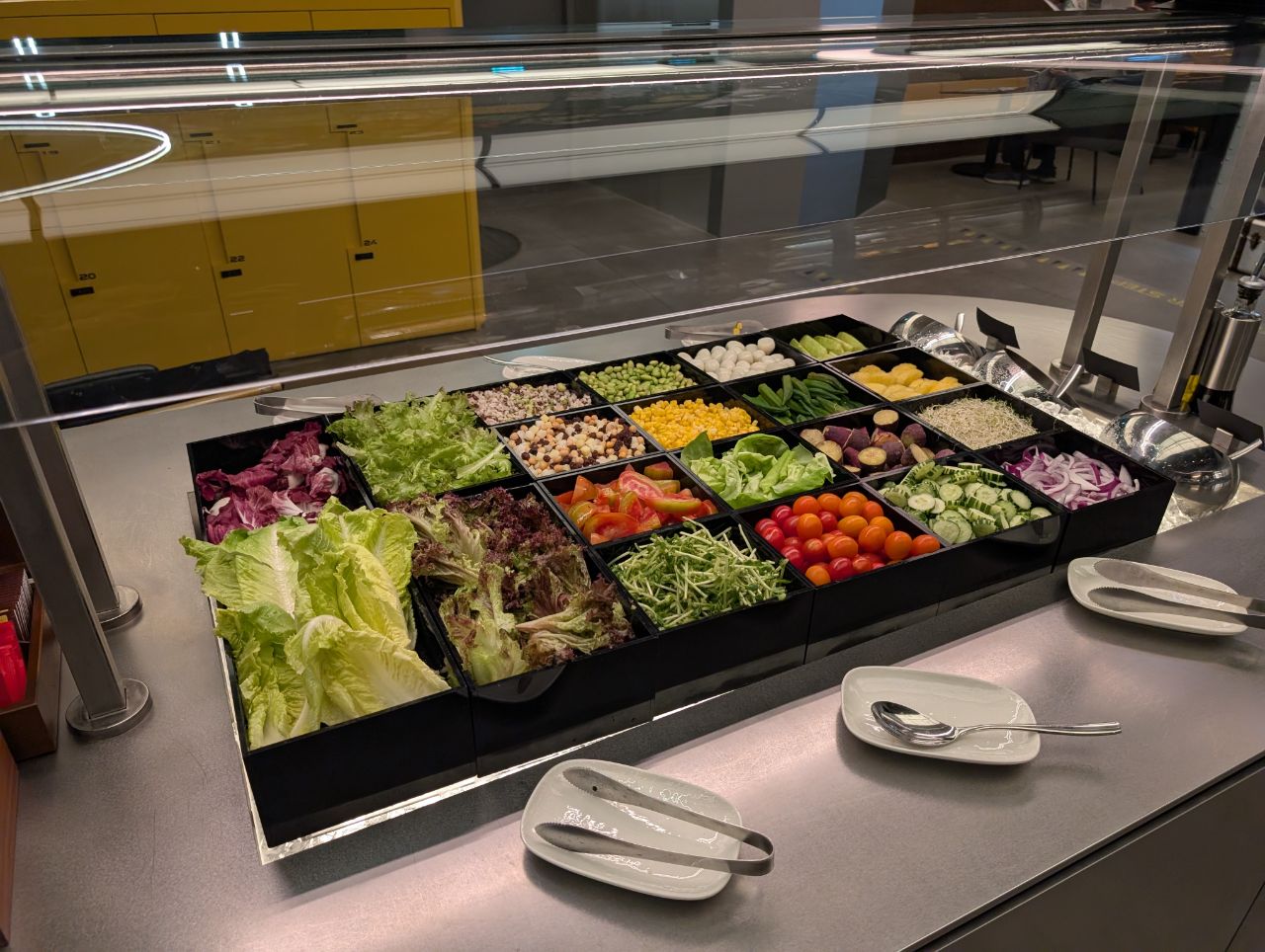 On the opposite side of the lockers and literature racks was the buffet area, one of two in the lounge.
