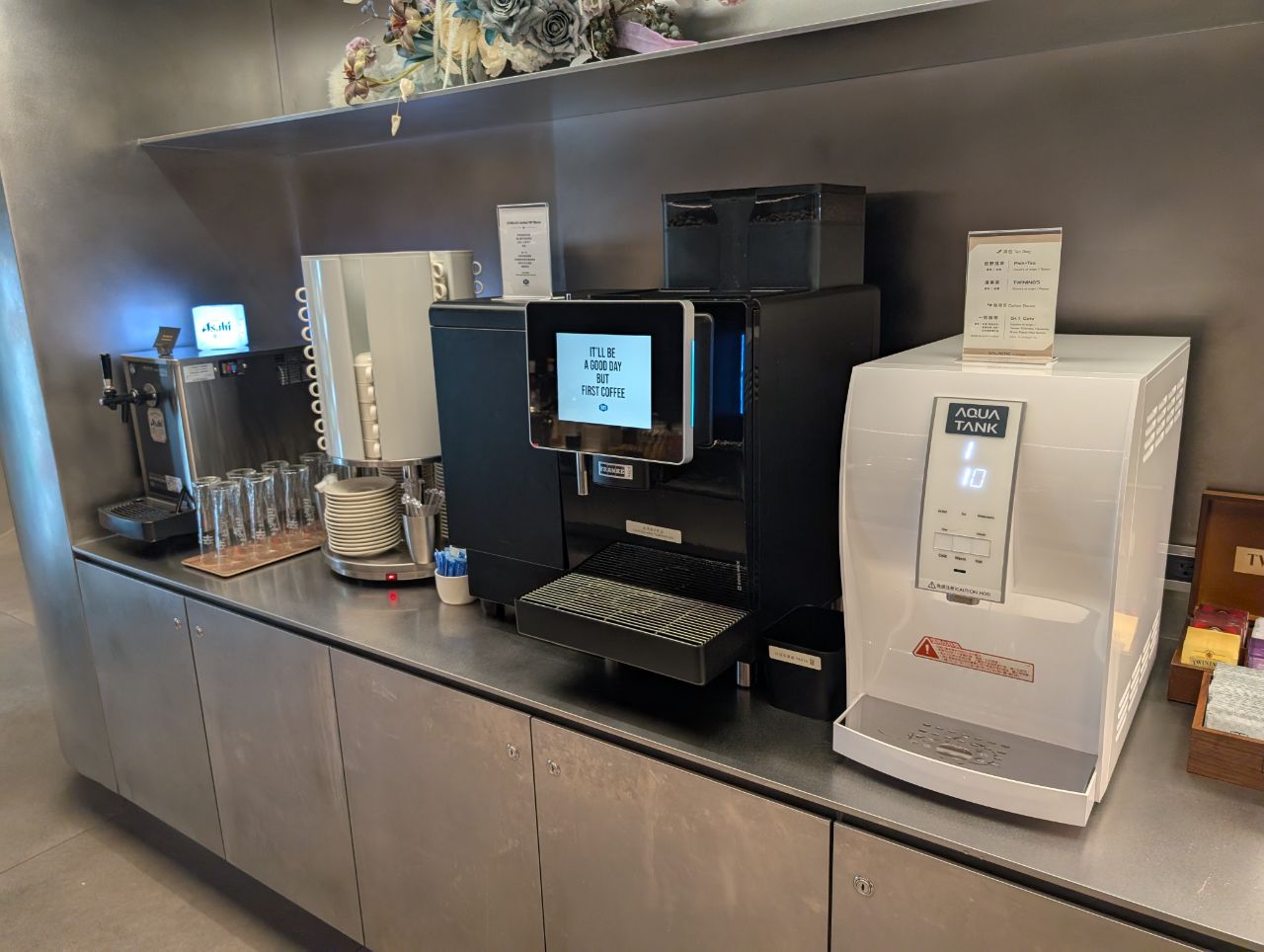 As for drinks, there was a digital coffee machine, self-pouring beer tap, and a hot and cold water dispenser.