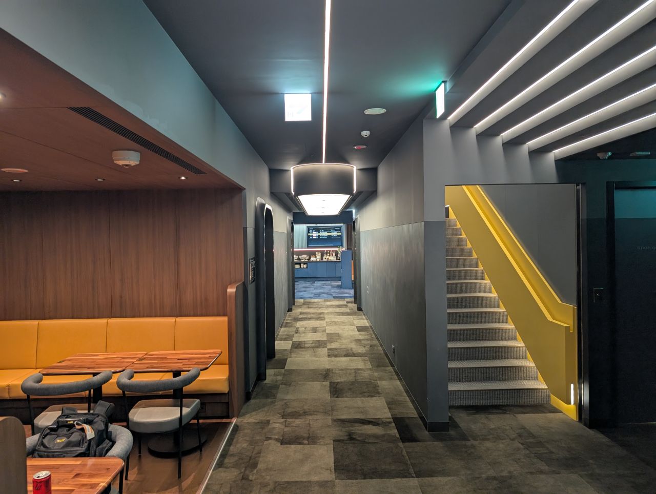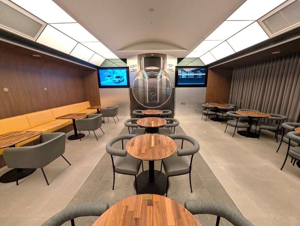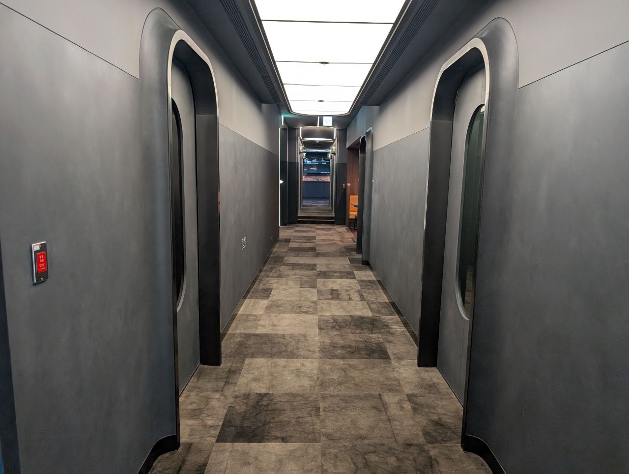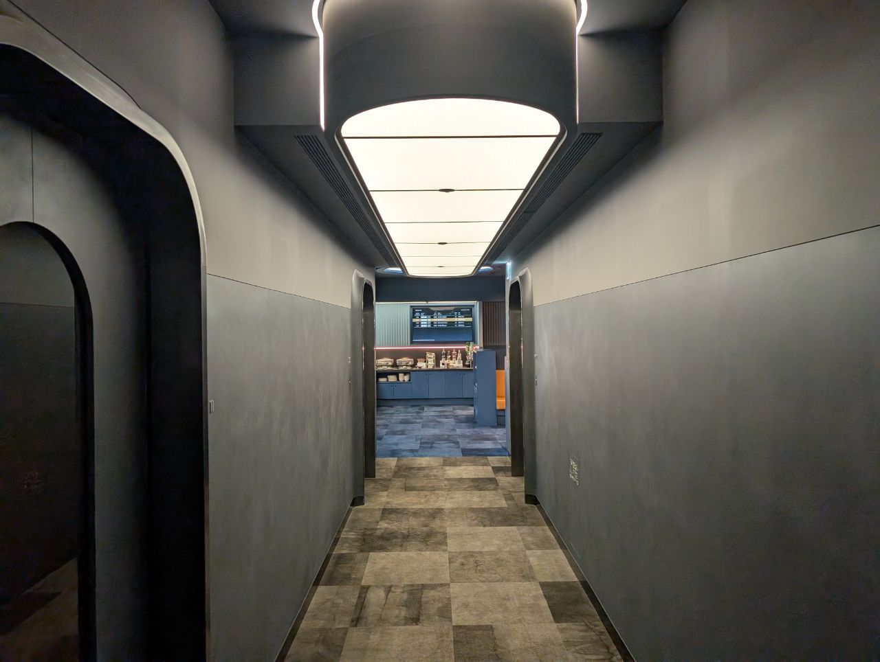 That extends to the ground experience too, with the entire lounge styled to look like a Star Trek spaceship. Think steel grey interiors, sleek matte walls, and whooshing automatic doors lining industrial minimalist corridors. In fact, I don’t recall seeing a single downlight or pendant light the whole time I was here. Instead, LED lights are built into the walls and ceilings, giving the place a Tron-ish vibe.