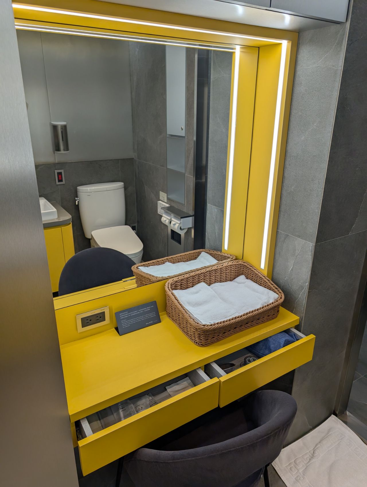 Bath towels were placed in a wicker basket on the dressing table. It’s a small thing, but I’m slightly uncomfortable when I don’t see lounge towels wrapped in plastic, since that’s the same towel you’re going to wipe your face with.