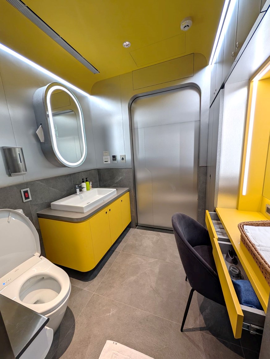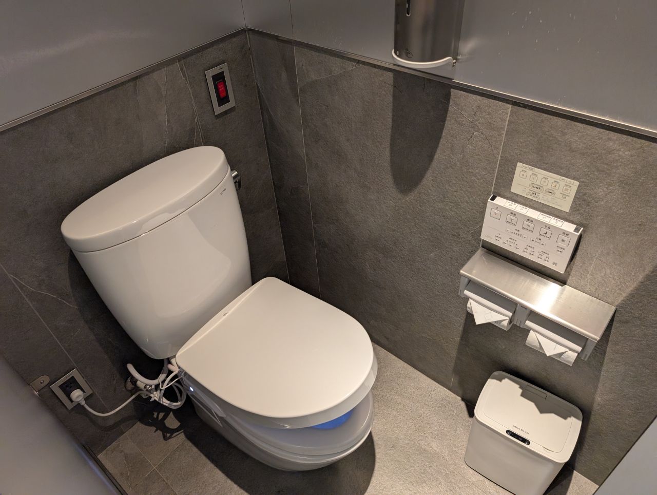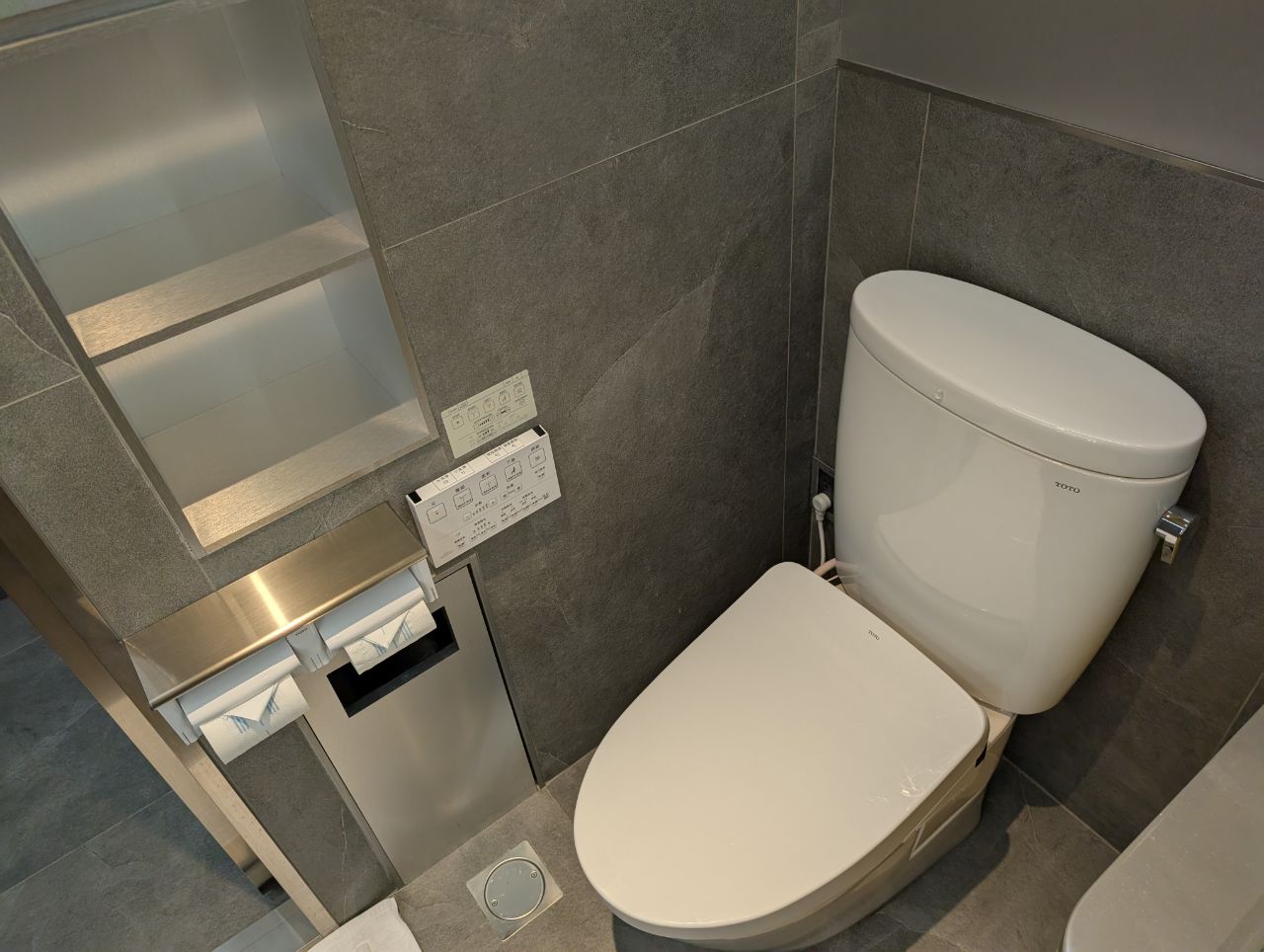 Showers were located on the lower level, and required a key card from the front desk to access. They weren’t huge, but they were still well-equipped with everything you could need, including a separate dressing table and an electric bidet toilet.