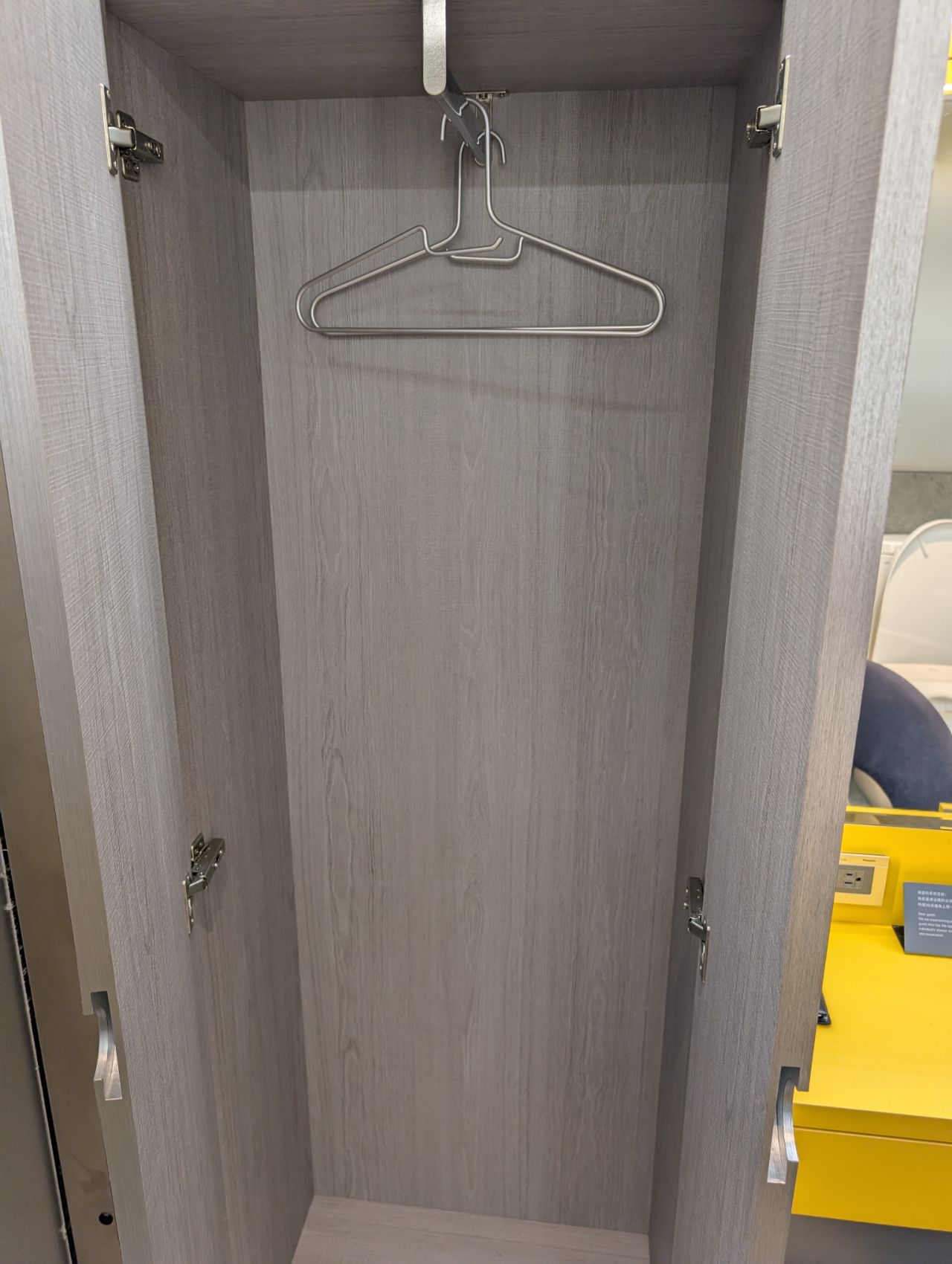 Next to the dressing table was a full-height wardrobe where you could hang your clothes while taking a bath. At first, I thought it was one of those “two-way closets” with a door opening into the corridor, where you press a button and someone comes to collect your clothes for ironing. But no such feature here!