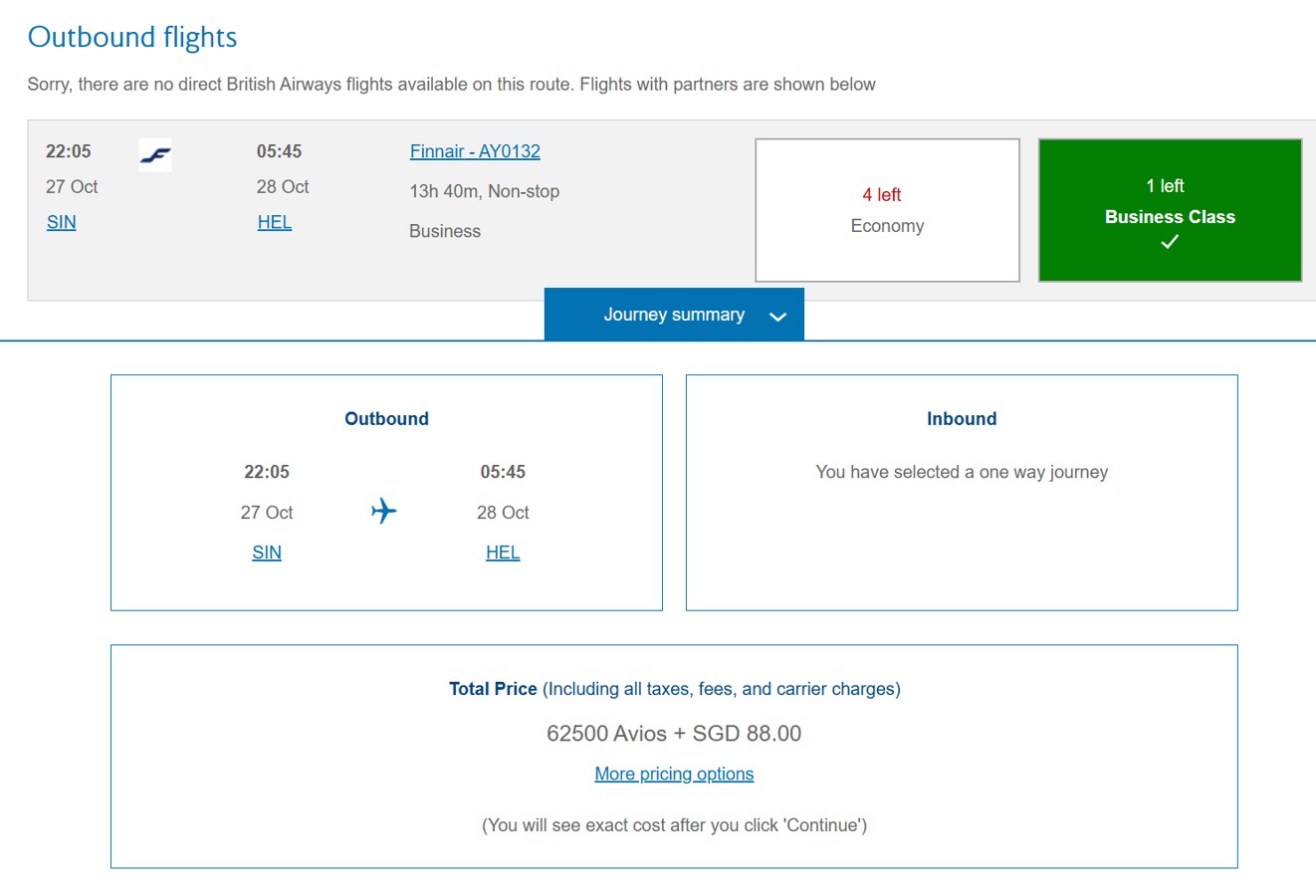 You can continue to book Singapore to Helsinki on Finnair Business Class for just 62,500 Avios + S$88, a sensational deal by any means.
