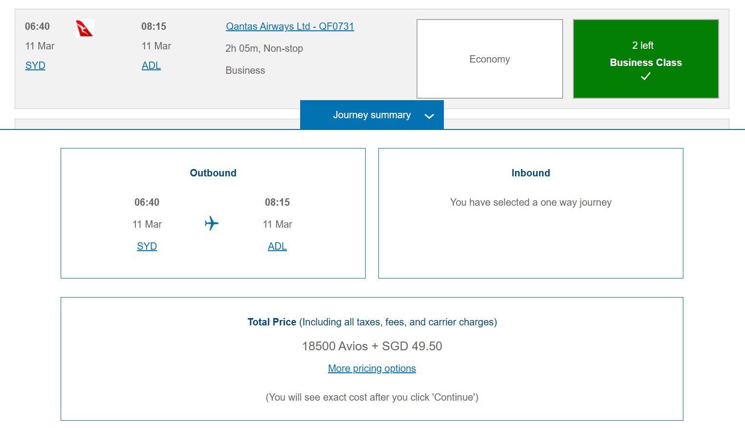 For example, it now costs 14,000 Avios to redeem a Business Class award on Malaysia Airlines between Singapore and Kuala Lumpur (great for a oneworld lounge safari), up from 12,500 Avios. Likewise, a Sydney to Adelaide Business Class award now costs 18,500 Avios, up from 16,500 Avios.