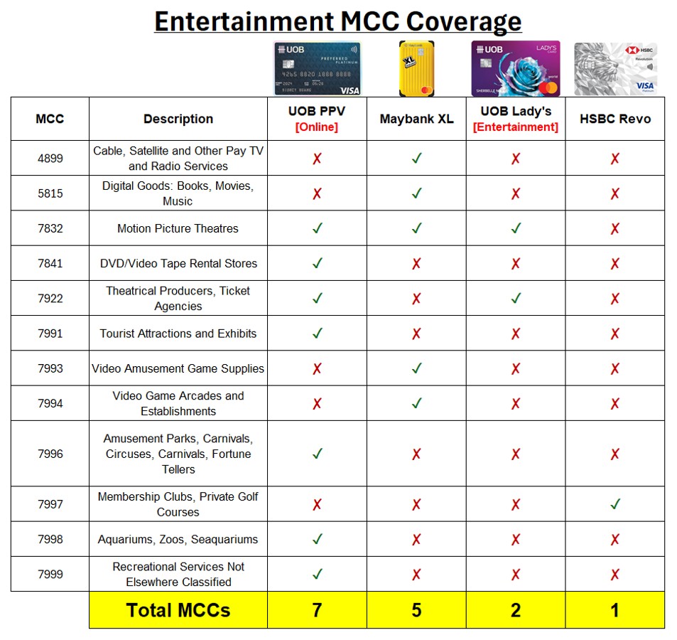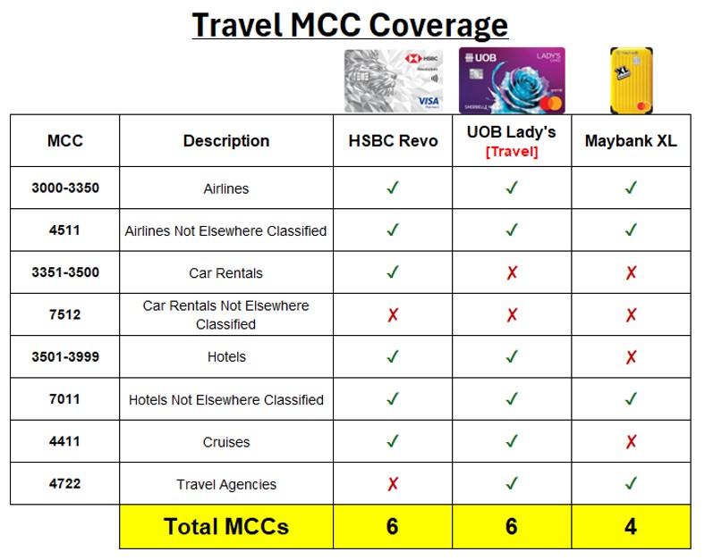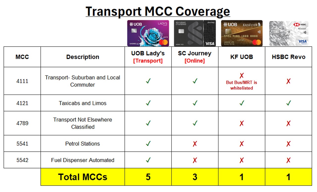 In an ideal world, you’d just stick to blacklist cards for everything, but if you’re looking for the widest MCC coverage, then the HSBC Revolution and UOB Preferred Platinum Visa (for online spend) would be good choices.