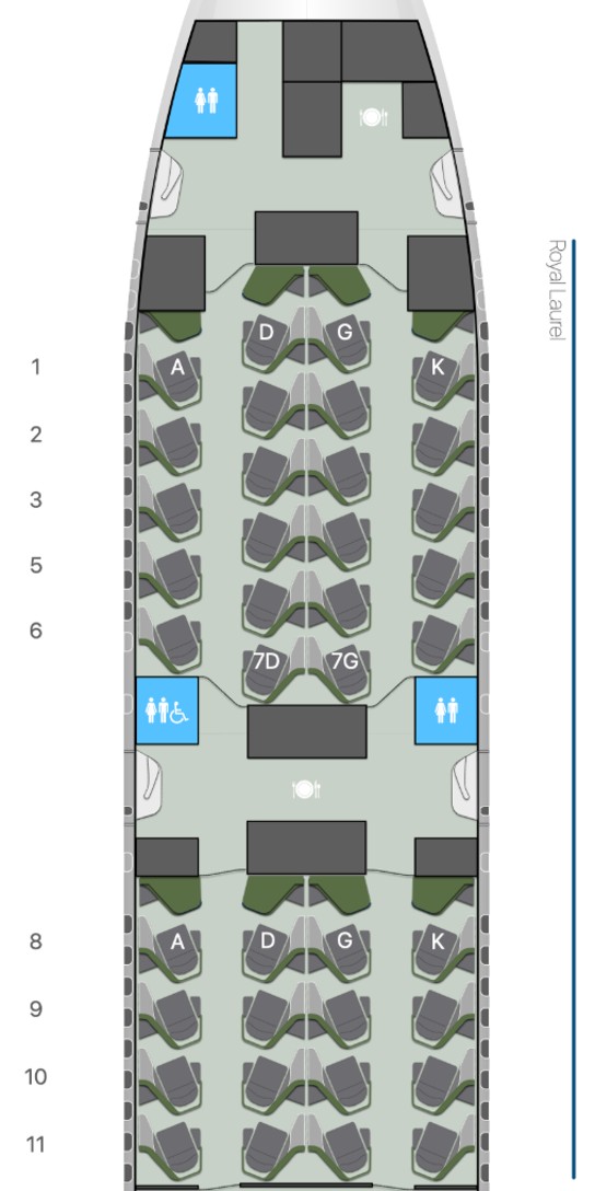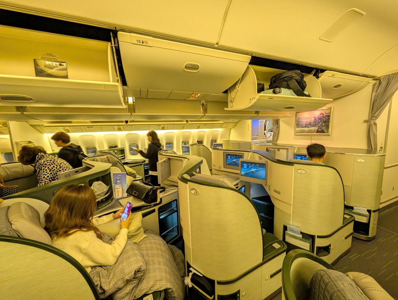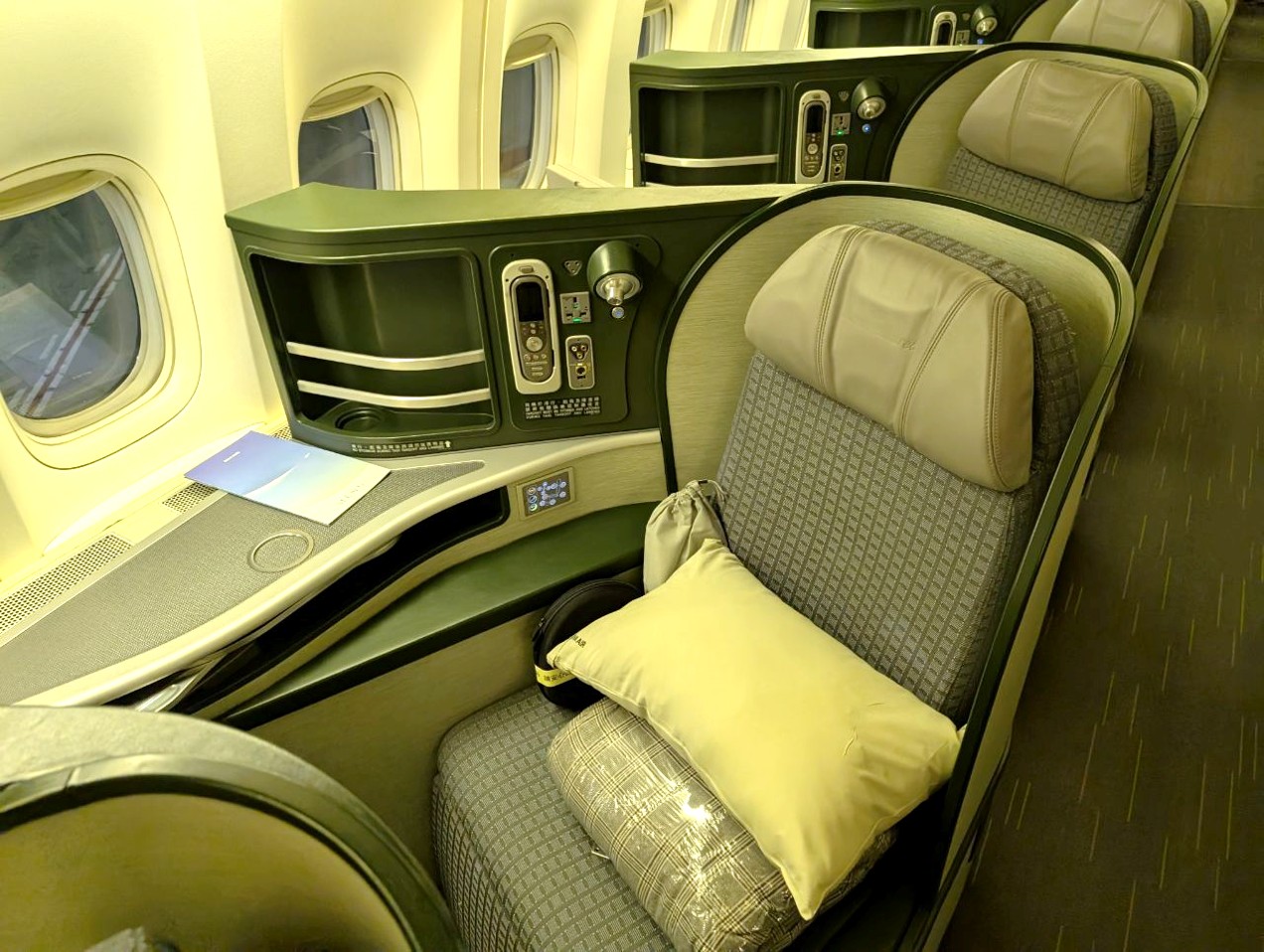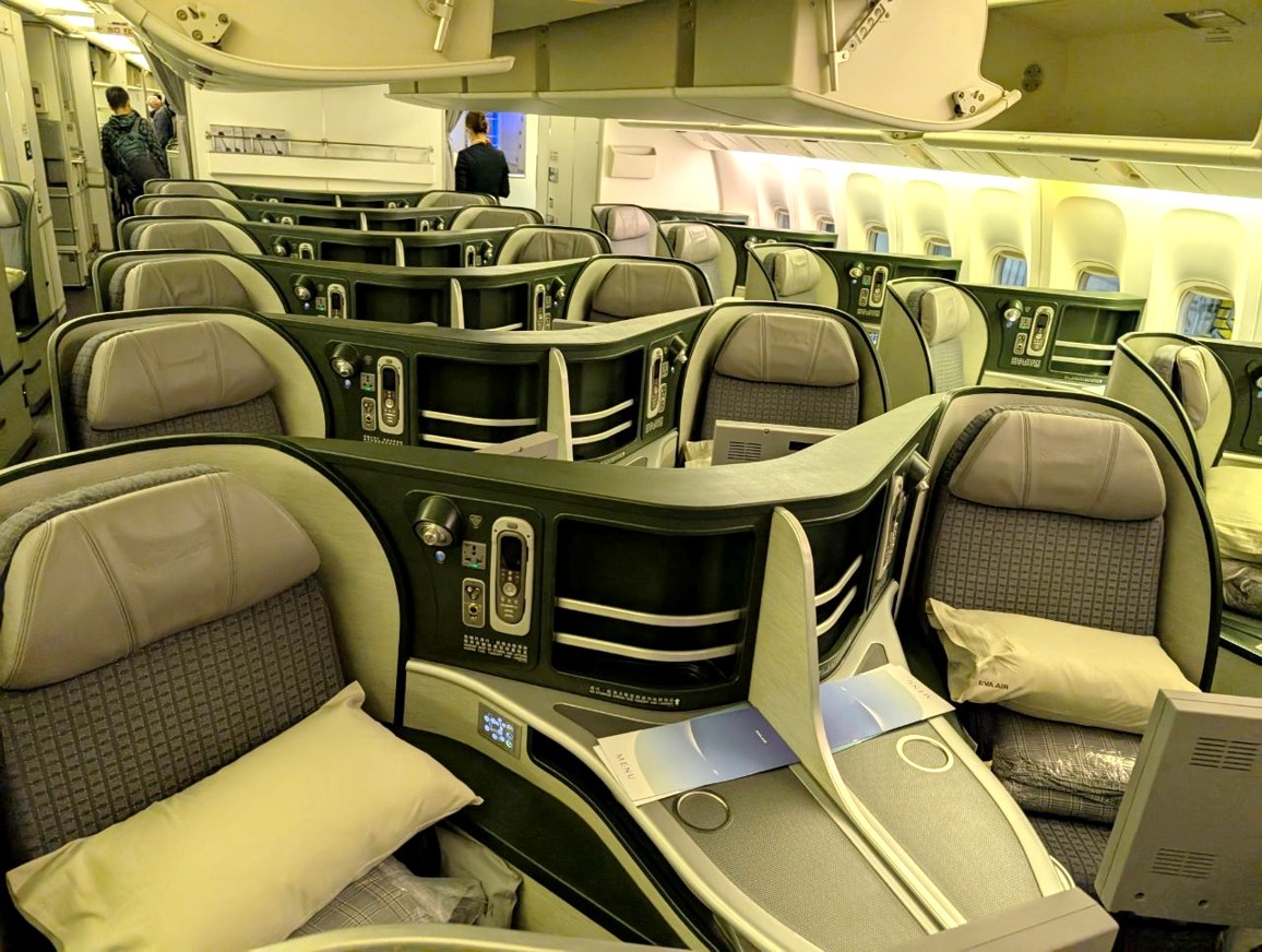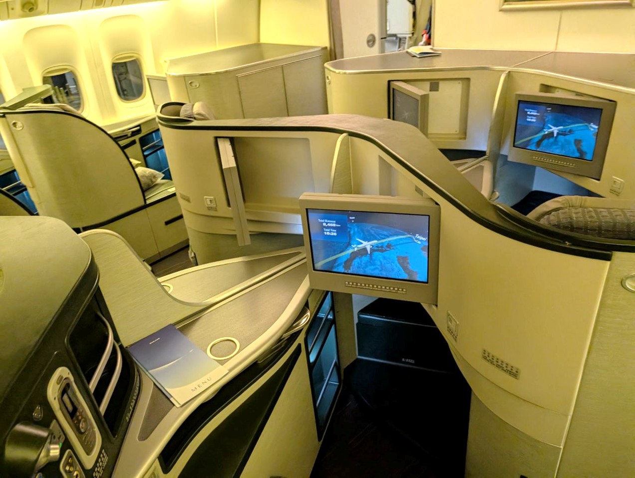 Today’s flight was operated by a B777-300ER, which had a total of 38 Business Class seats (there’s another variant with 39). These are split across two cabins in a 1-2-1 configuration that gives all passengers direct aisle access.