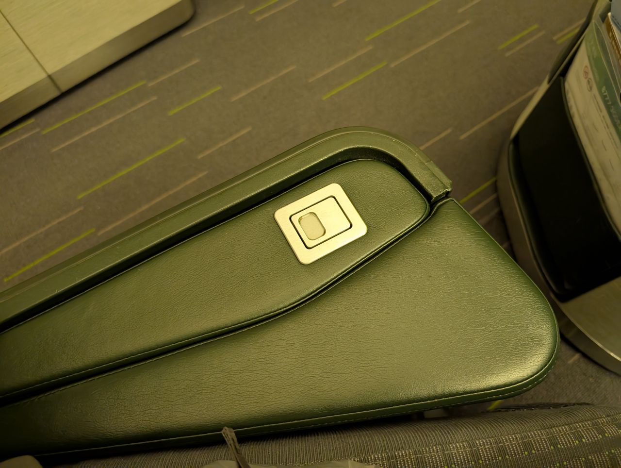 Remember how I mentioned that EVA Air has two different variants of the B777-300ER? On the flight from Taipei to Singapore, I had the other kind, which has a more modern touchscreen remote controller and two USB-A ports, and ditches the iPod dock and RCA jacks. The seat is otherwise the same though.