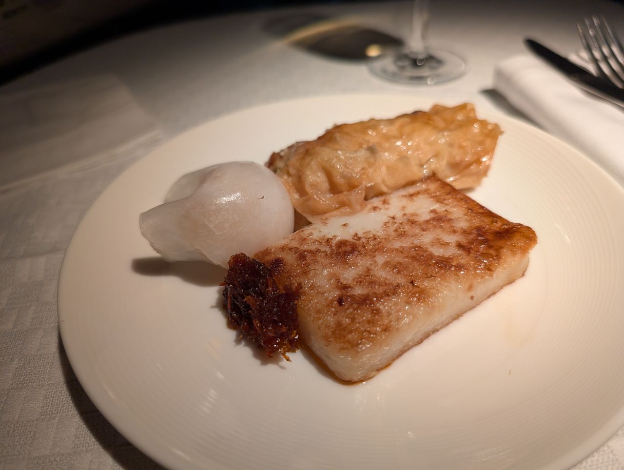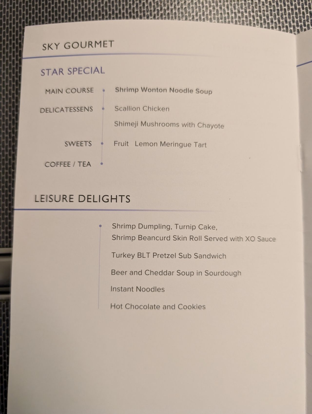 The snack menu was limited to instant noodles, sandwiches and dim sum. I went for the dim sum, which consisted of a shrimp dumpling, turnip cake and beancurd skin roll with shrimp filling and XO sauce. It was very average, and nowhere near the quality of STARLUX’s snacks.