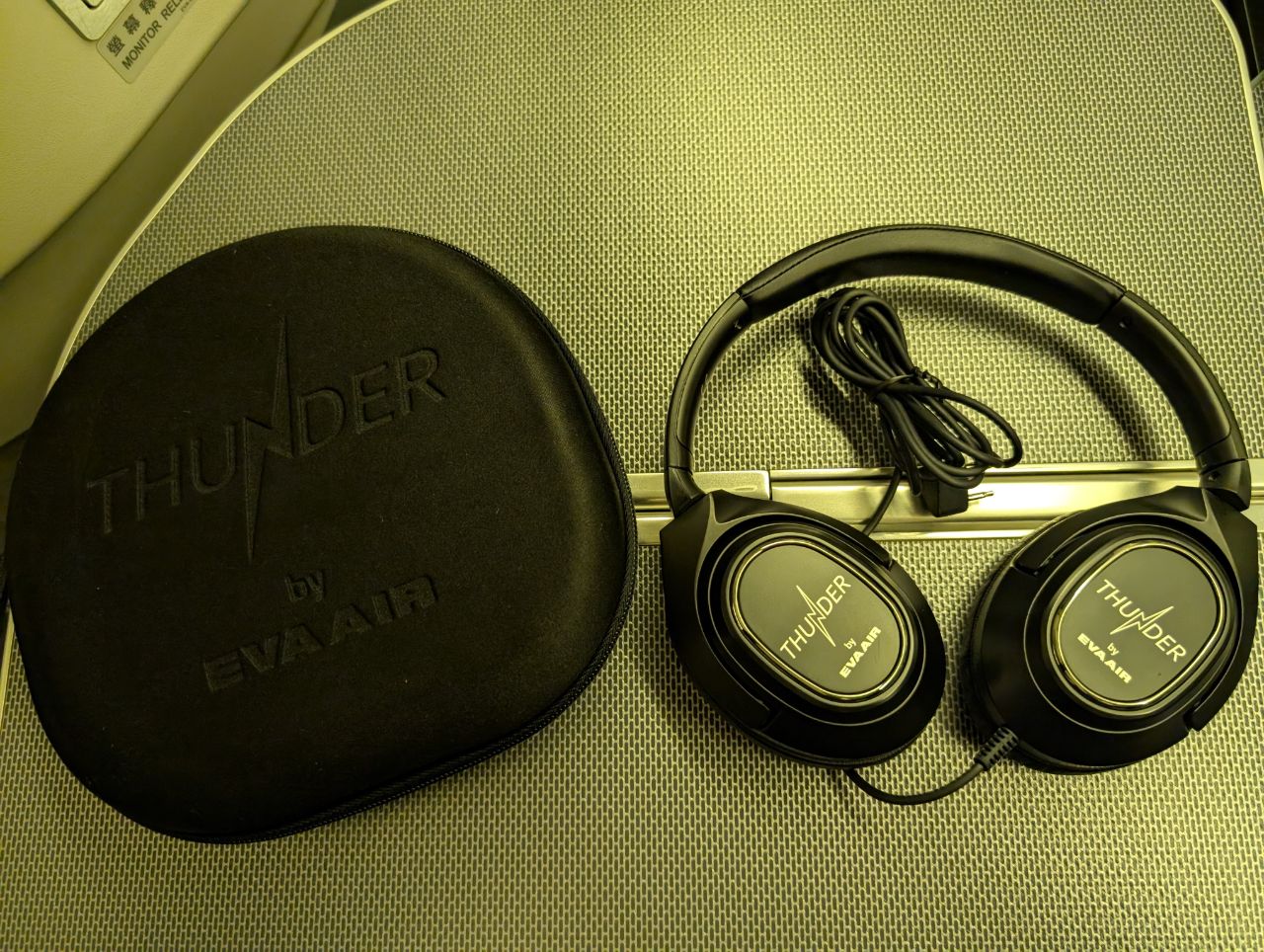 Noise-cancelling “Thunder by EVA Air” headphones were provided, basically the same model the airline has been using for more than a decade. These were comfortable to wear for extended periods, though nothing fantastic.