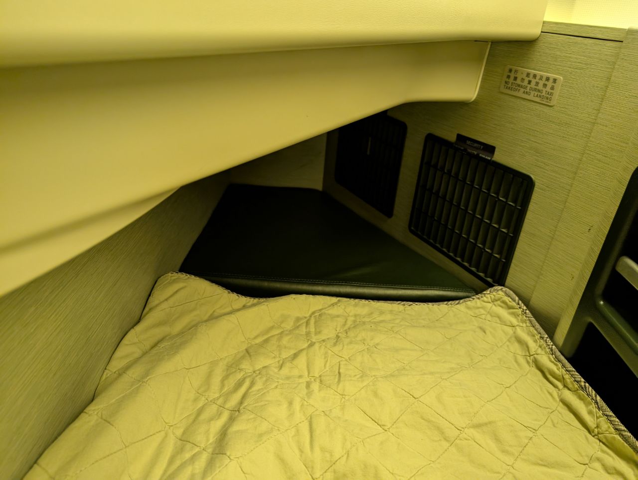 As this was a red-eye flight, the crew went around prior to take-off asking passengers if they’d like their mattress pad to be added now, allowing them to sleep as soon as the flight departed. I took them up on this offer, if only to save some time later.