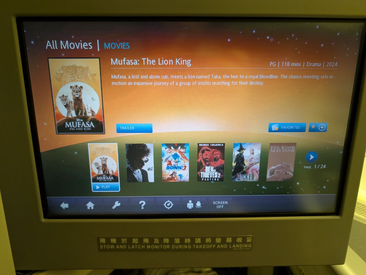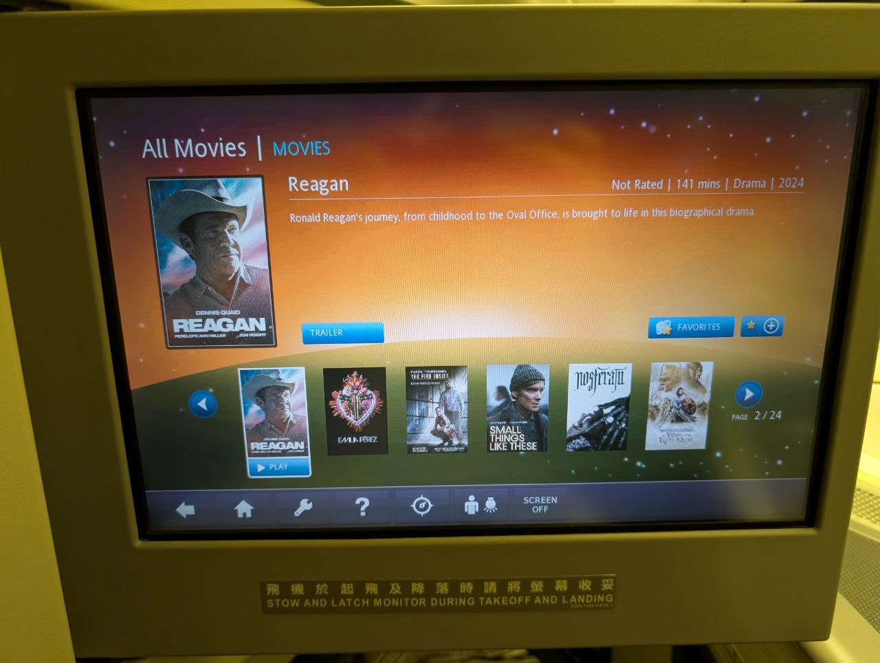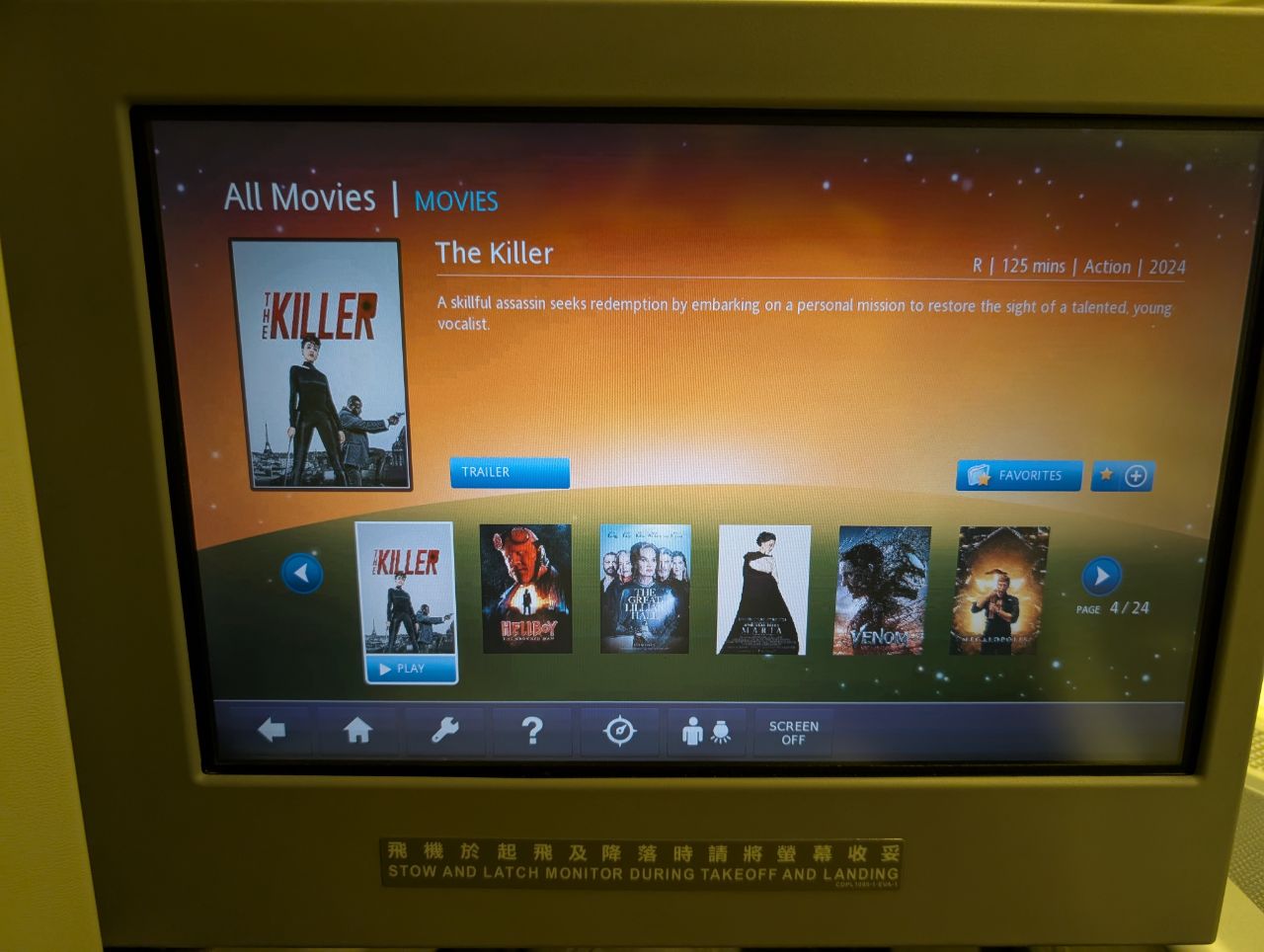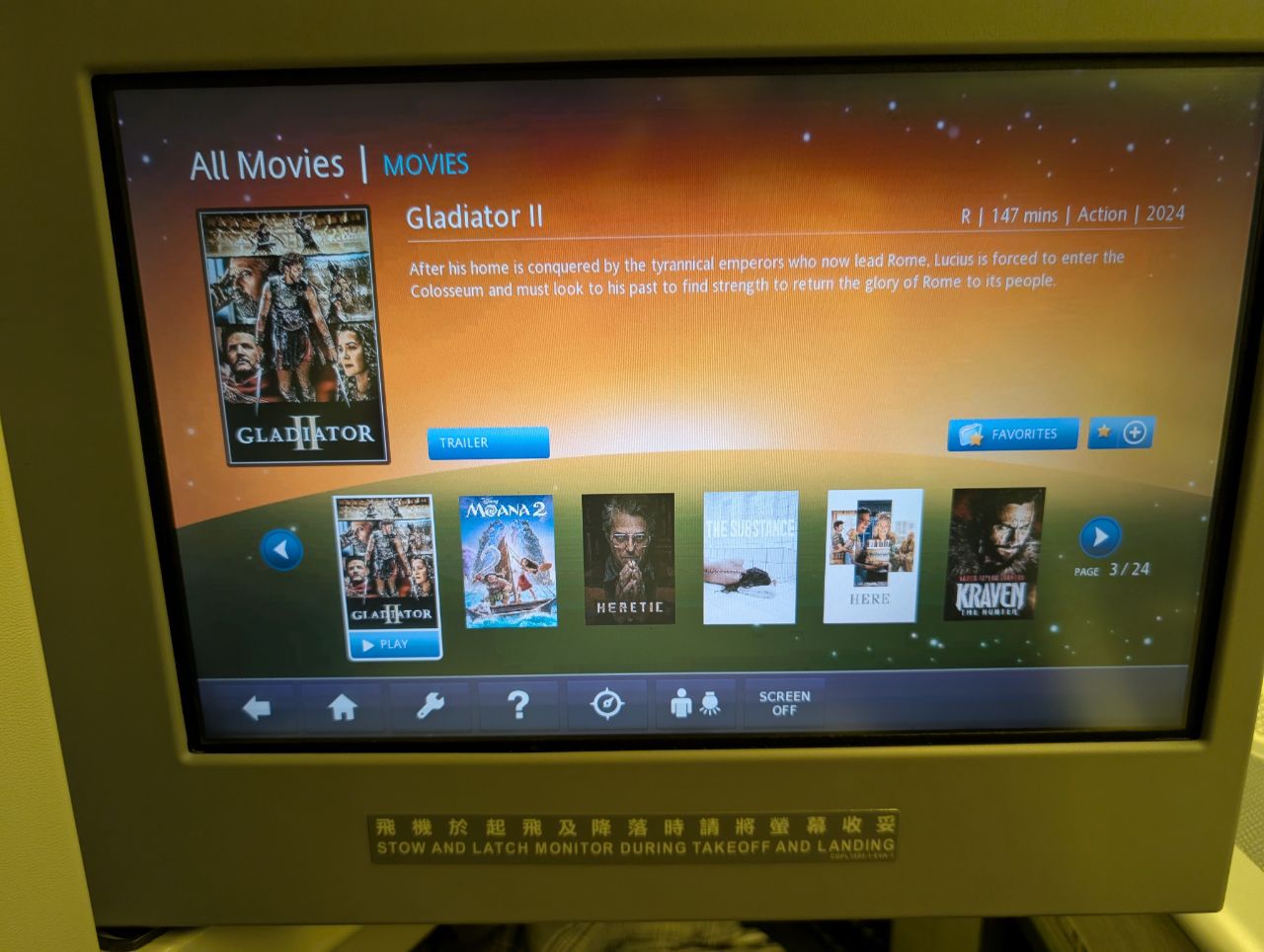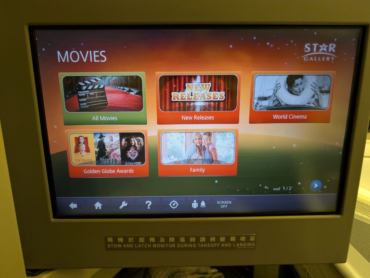The movies available weren’t the most recent, and the selection definitely wasn’t as large as you’d find on KrisWorld or Emirates ICE. If you’re fussy about what you watch, I’d recommend bringing your own.