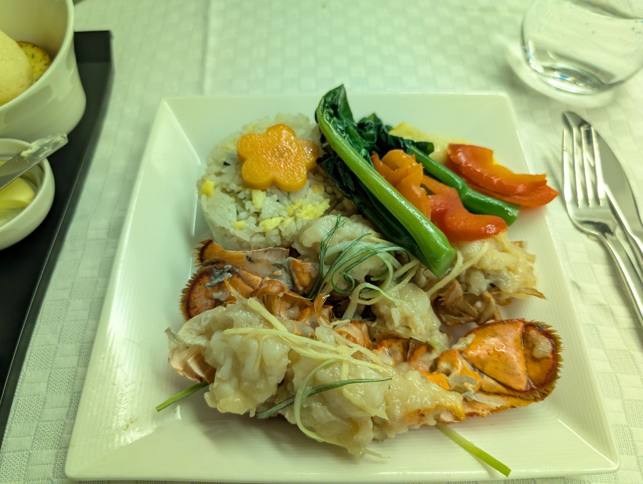 I followed this up with another lobster dish from the online menu, sauteed with ginger and scallion and accompanied with egg fried rice. The lobster meat was fresh and sweet, and I wish Singapore Airlines would serve theirs this way instead of drowning it in butter and cream.